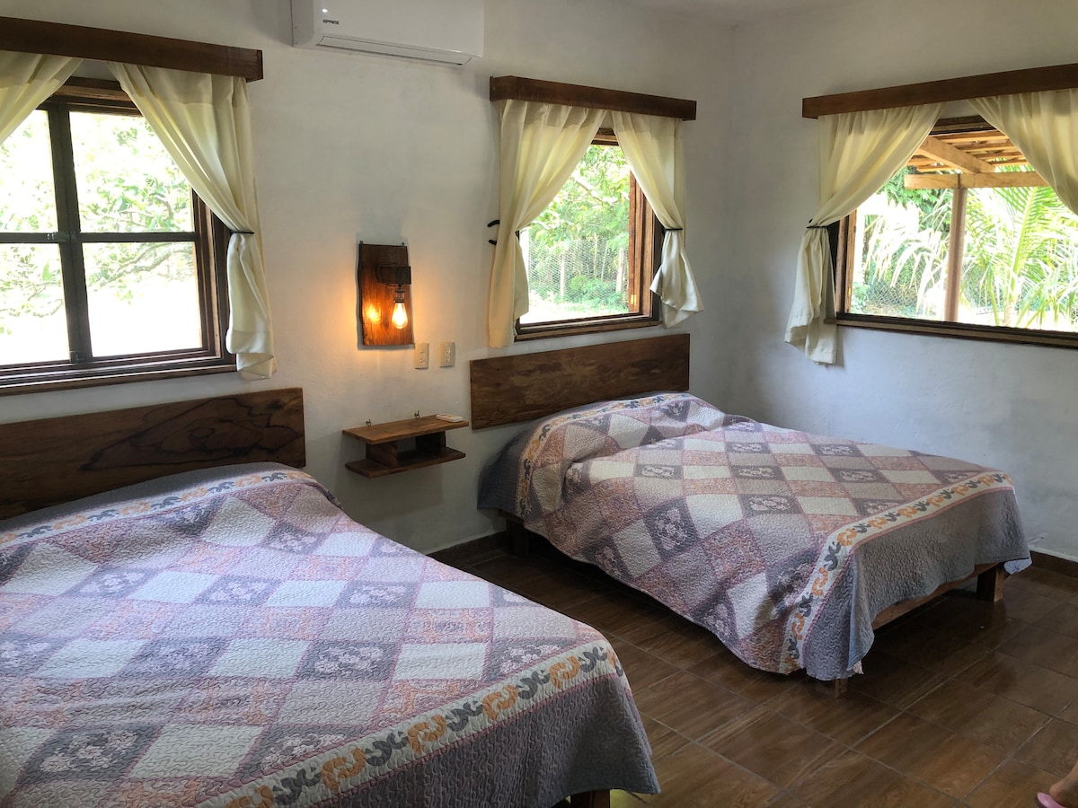 *Casa ecológica frente al mar Casa ecológica a 5km del pueblo de Tecolutla Justo frente al mar Disfruta de una de las playas más bonitas de la zona La casa es de dos pisos, cada piso cuenta con: *Habitación con 3 camas matrimoniales *Baño propio - con agua caliente *Entrada independiente Cocina compartida entre ambos pisos: *Estufa de gas *Utensilios básicos *IMPORTANTE* Se cuenta con refrigerador, sin embargo por trabajar con paneles solares este se debe usar únicamente de manera intermitente.