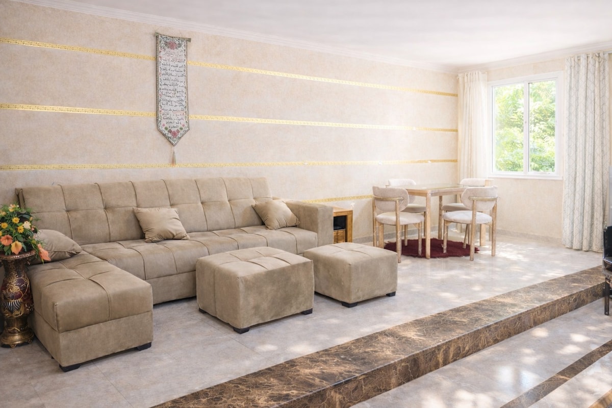 Apartamento cómodo de 2 dormitorios – Primer piso Cómodo departamento con dos dormitorios, un baño, sala de estar y cocina. Ubicado en el primer piso, lo que lo hace ideal para personas mayores y familias. Situado en una zona privilegiada en la ciudad de 6 de Octubre, muy cerca del Mall of Arabia, el Hospital Dar Al Fouad, las universidades MSA y October, y todos los servicios esenciales. A solo 25 minutos de las Pirámides y del Gran Museo Egipcio. Adecuado para estancias cortas y largas.