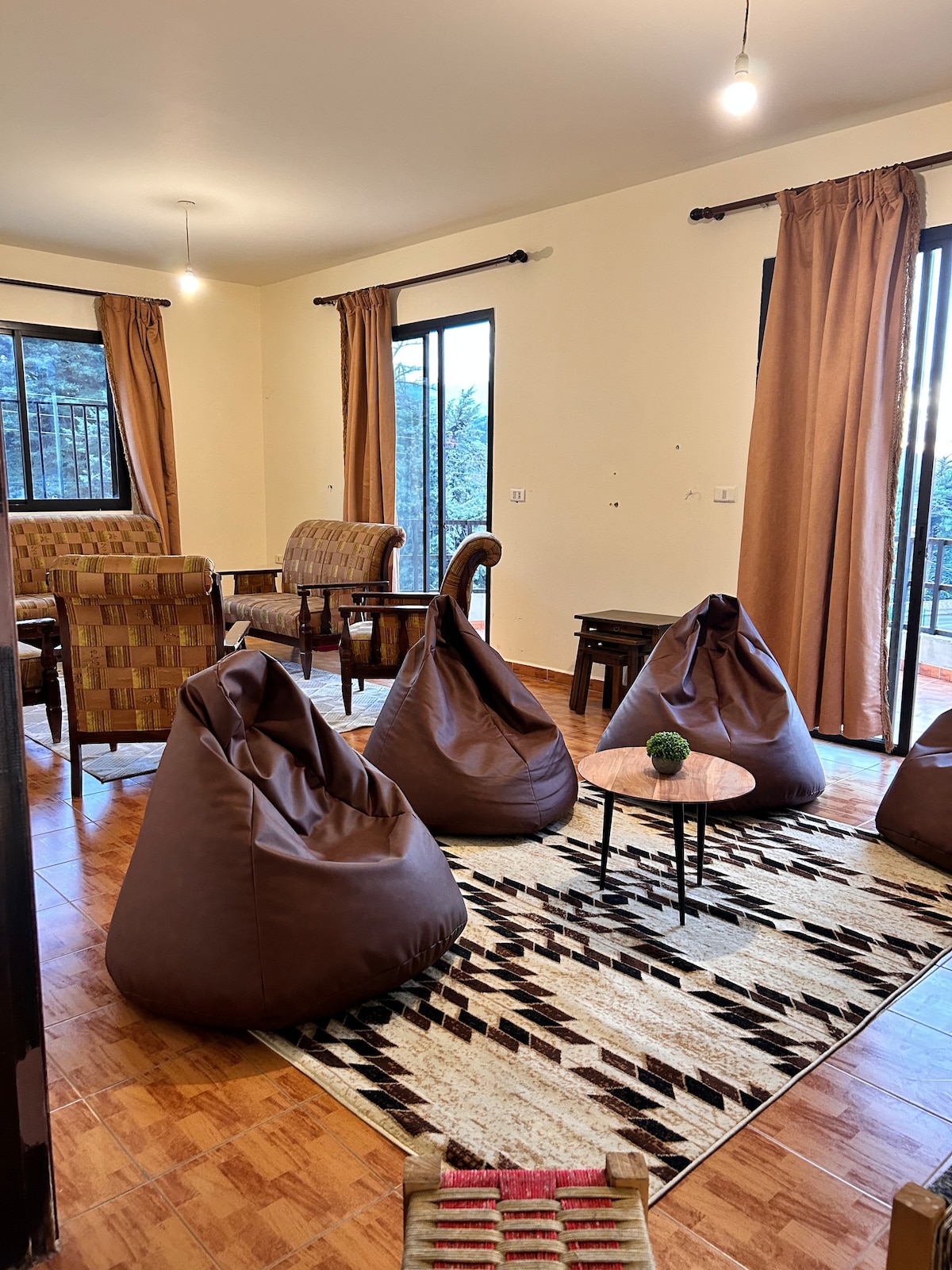 Tucked away in the green hills of Chouf, this cozy getaway is the perfect retreat from city noise. Wake up to mountain views, fresh air, and birdsong. Spend your mornings sipping coffee on the terrace, your afternoons exploring nearby villages and waterfalls, and your evenings by the fire under a sky full of stars. Designed for comfort and calm, the space blends modern simplicity with rustic charm — ideal for couples, small families, or friends looking to recharge.