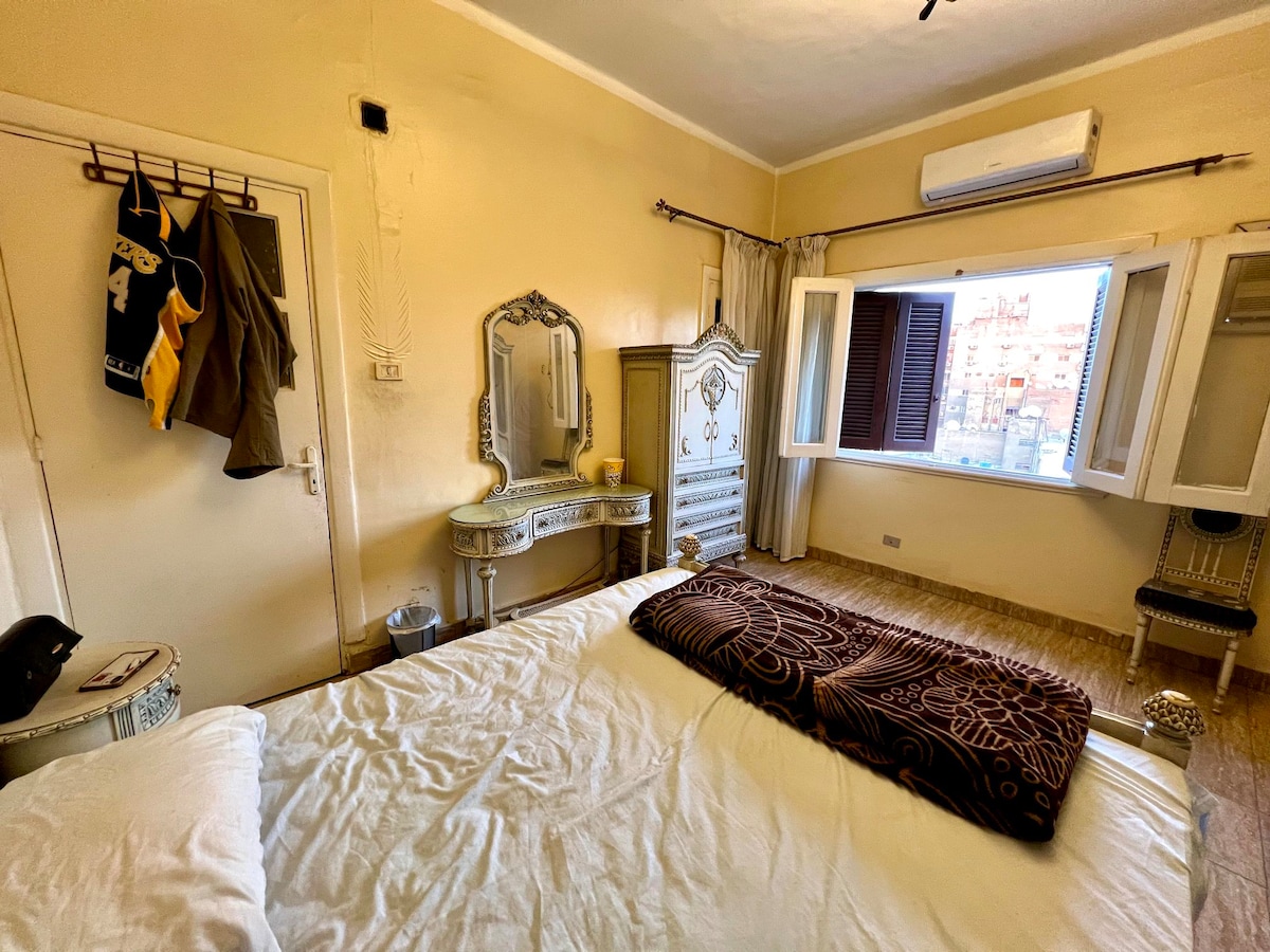 Departamento de 2 dormitorios muy cerca del centro de la ciudad en el centro de El Cairo. Es adecuado para nómadas digitales o trabajadores remotos, ya que tiene dos escritorios (120 cm de ancho) y WIFI. El apartamento tiene vistas a un hermoso palacio francés muy encantador. También es: A 15 minutos a pie del museo egipcio. A 30 minutos caminando del mercado más grande de Egipto. A 10 minutos en coche del antiguo Cairo islámico. A 10 minutos en coche o transporte público de la estación de tren principal. A 10 minutos en taxi o público de la estación principal de autobuses.