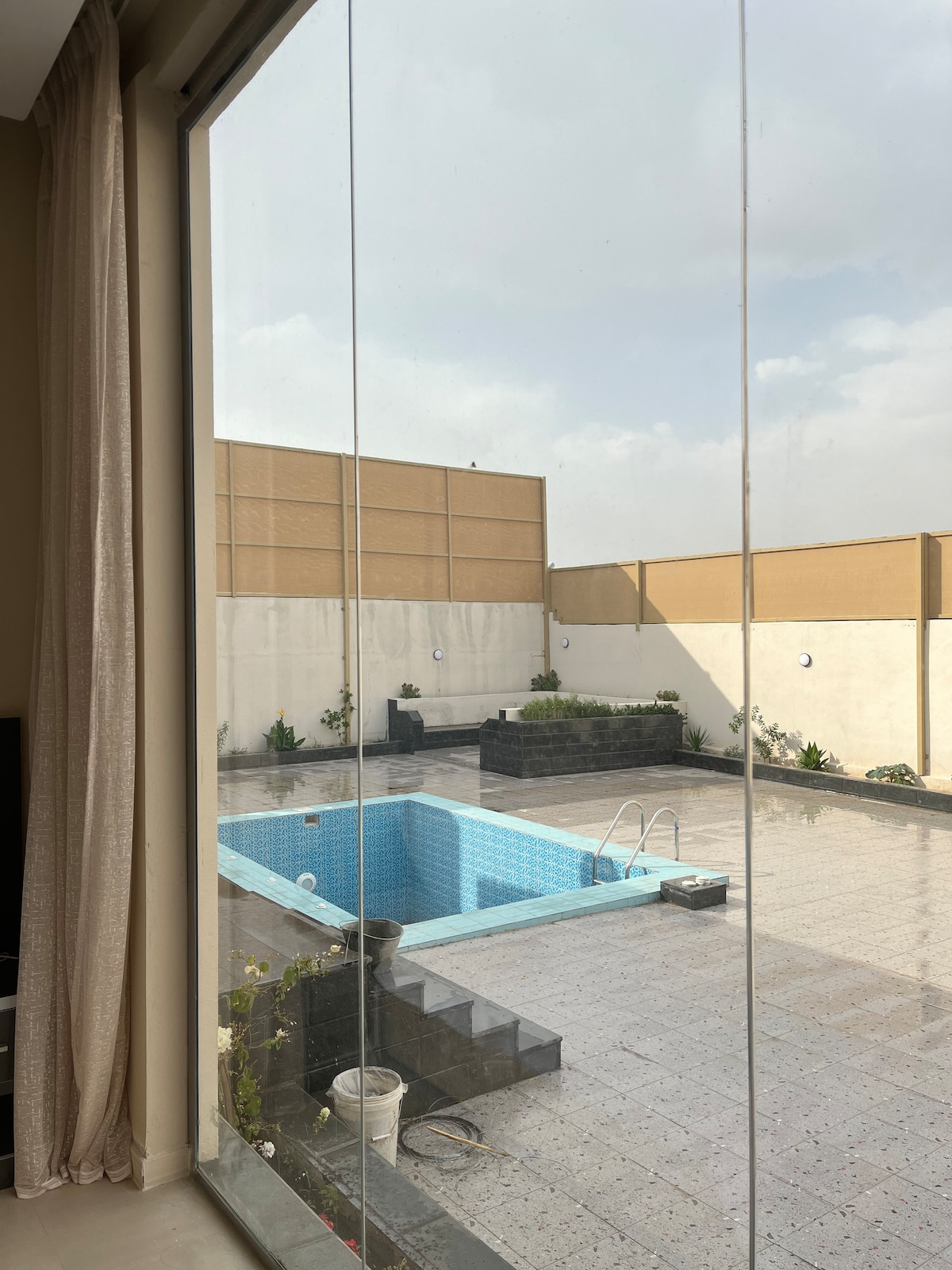 Relax with the whole family or friends at this 3-bedroom peaceful place to stay. Furnished patio & terrace with gas fire pit operational in winter, projection media room with Netflix, STCtv, Shahid vip tv, indoor heated swimming pool operational only in summer, two family rooms, full kitchen, washing machine, 4-full bathrooms, free 8-car parking, driver private room with kitchen & bathroom.
