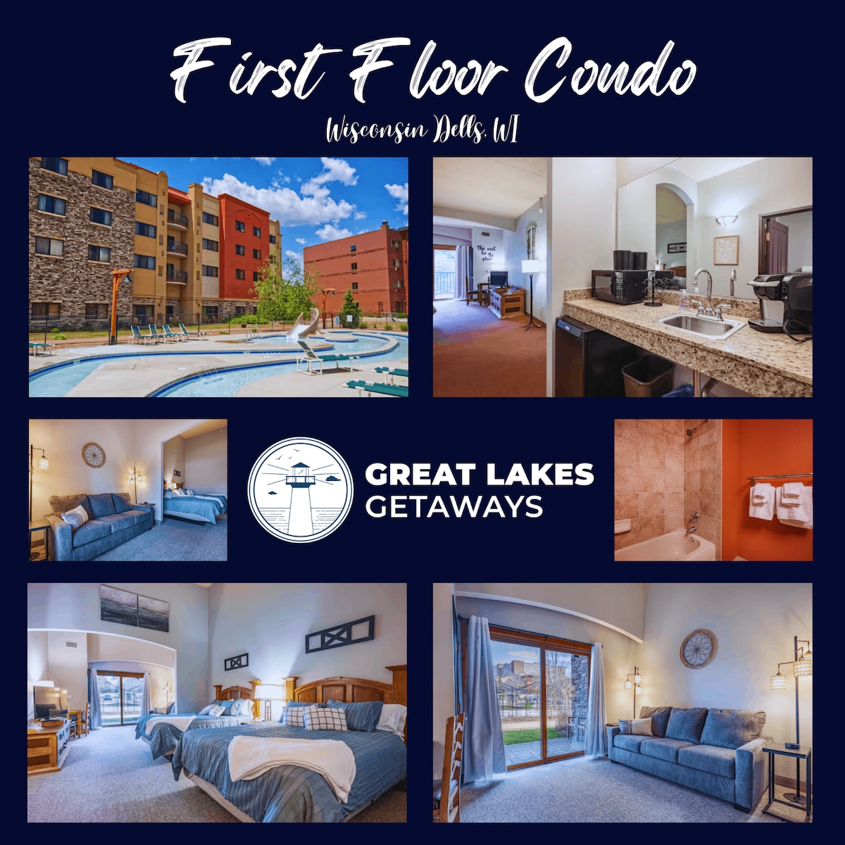 * ** PASES PARA PARQUES ACUÁTICOS INCLUIDOS El condominio tiene capacidad para 8 personas cómodamente. Se permiten 10 huéspedes según las pautas de seguridad contra incendios, no se proporcionarán arreglos para dormir para los últimos 2 de 10 huéspedes, trae tu propio colchón inflable, sacos de dormir, etc. ¡Bienvenido a tu escapada perfecta! Este espacioso condominio de 2 dormitorios y 2 baños se encuentra en el hermoso Wisconsin Dells, que ofrece comodidad y comodidad para tu familia o grupo.