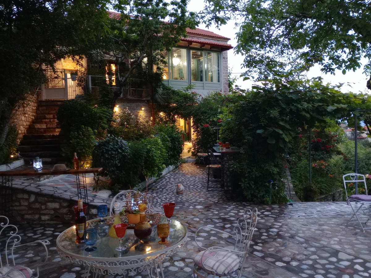 Relájate en este tranquilo y elegante espacio loft-suite de una casa de piedra de 65 metros cuadrados, 100 y más años de antigüedad. Vistas ilimitadas a las montañas de Acarnanian, el castillo del pueblo (Karaouli), el pueblo de Krentis, las montañas circundantes con abetos. El plano abierto tiene una cama doble con colchón anatómico, sala de estar, oficina, baño de mármol separado, muebles hechos a mano de alta estética, delicadeza y comodidad. Cuando oscurezca desde la gran ventana doble yla ventana del techo, notarás el cielo con las estrellas.