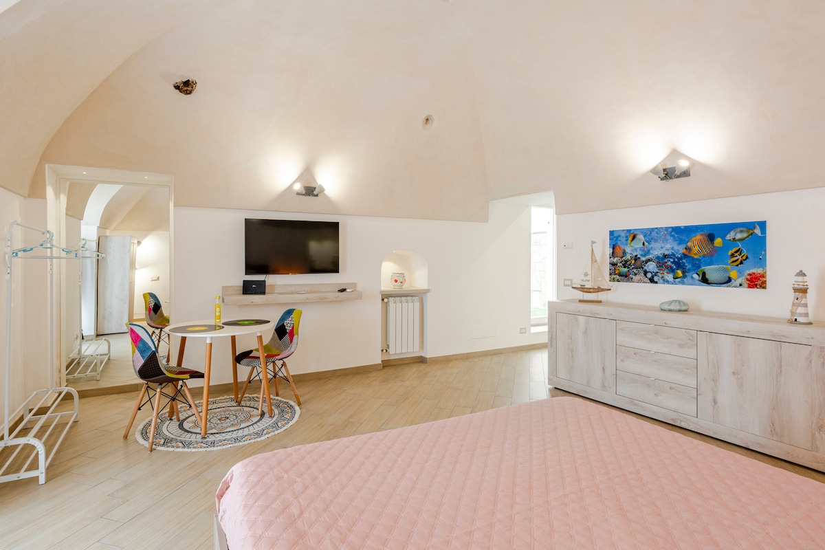 Increíbles puestas de sol en el Golfo de Sorrento desde el balcón de la propiedad con vistas al mar de la histórica Villa de los años 800. Encantadora, elegante y bien equipada casa de vacaciones en una propiedad exclusiva. Un dormitorio doble, una sala de estar con un sofá cama doble muy cómodo, dos baños, cocina pequeña. Cuenta con paredes de piedra, techos altos, muebles antiguos, junto con características contemporáneas como sauna de infrarrojos, ducha de cromoterapia y wifi rápido. Patio privado. Estacionamiento gratuito. CUSR 15063080EXT1055