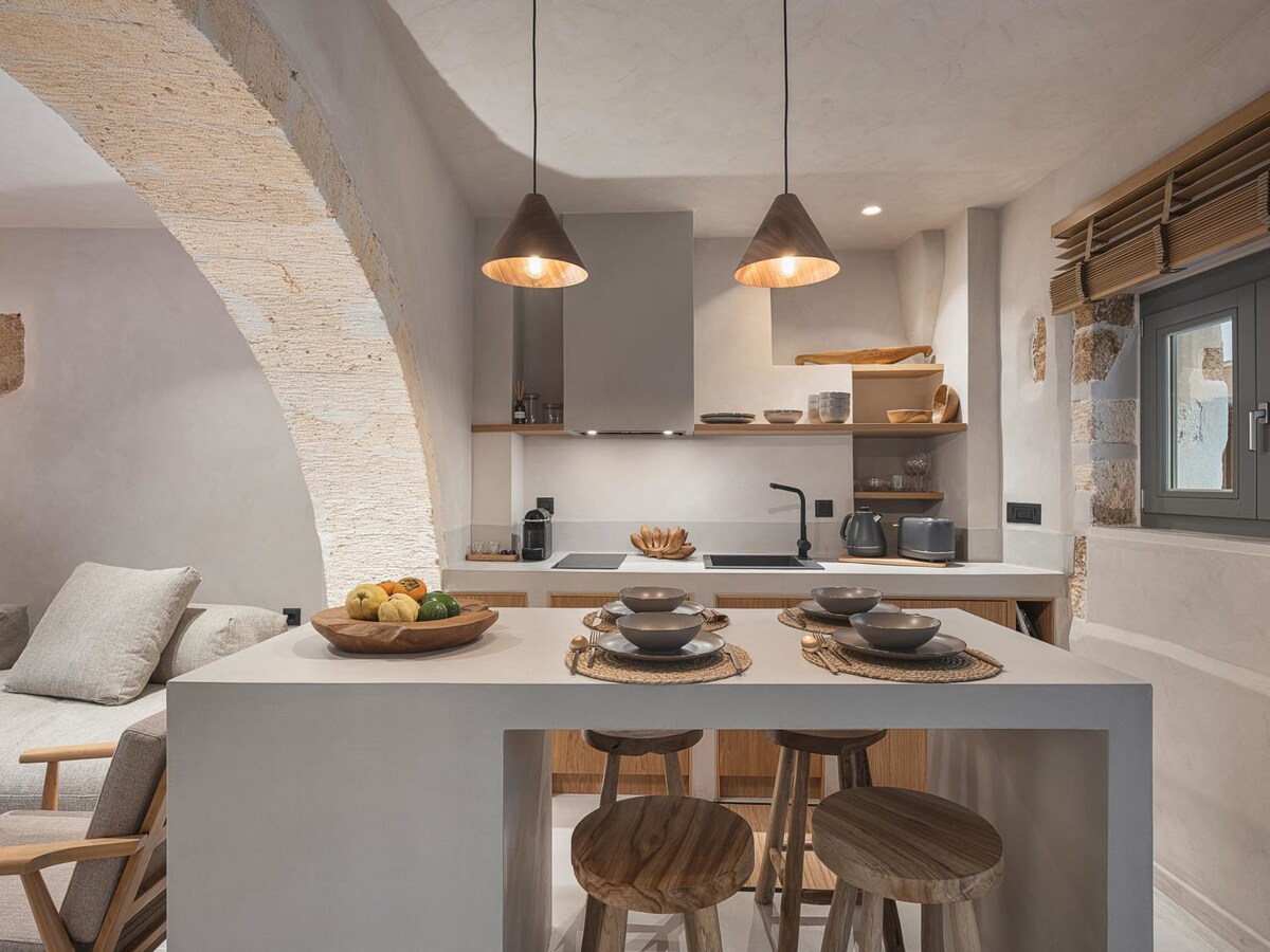 La «Residencia veneciana» de Domicilechania fue construida en el siglo XIV y es conocida como el Palacio de los Rectores venecianos. También se utilizó como Tesorería y Archivos de la administración Con vistas al antiguo puerto y al faro veneciano, su vista es única. Ideal para una o dos parejas o familias con un máximo de 3 niños. La Residencia Veneciana es el lugar ideal para explorar el casco antiguo de La Canea, pero también la campiña de la región. La playa más cercana está a 10min. caminando.