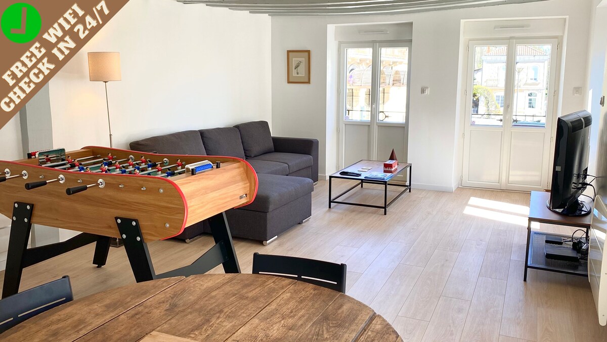 Bienvenido a Eymet, encantadora casa de campo del Périgord, donde ofrecemos un apartamento de 46 m2 con una decoración moderna y cuidada, y con equipos nuevos y de calidad. Perfecto para una escapada a Dordoña, este apartamento con todas las comodidades, a pocos pasos del corazón de la ciudad, es ideal para descubrir la zona. Instalaciones: - 1 dormitorio con cama 160 x 200 - un sofá cama - microondas, lavadora, lavavajillas, cafetera,... - Se proporciona ropa de cama y de baño - plaza de estacionamiento privada