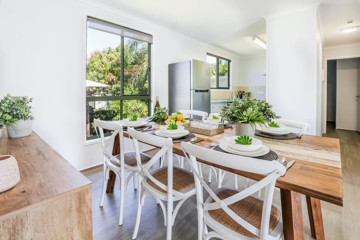 Te damos la bienvenida a Agnes Water Views. Situado en uno de los puntos más altos de Agnes Water, disfruta tanto del amanecer como de la puesta de sol desde Agnes hasta 1770 y Bustard Heads desde el porche de 13 m de largo. Abierta a los huéspedes por primera vez en septiembre de 2021, nuestra casa de campo restaurada con cariño se ha terminado pensando en tu comodidad. Disfruta del tranquilo bloque de matorrales con abundantes animales nativos. Aunque es privada y tranquila, estás a solo 1 km de la playa principal y a 3 minutos de tiendas, cafeterías y restaurantes en la parte inferior de la colina.