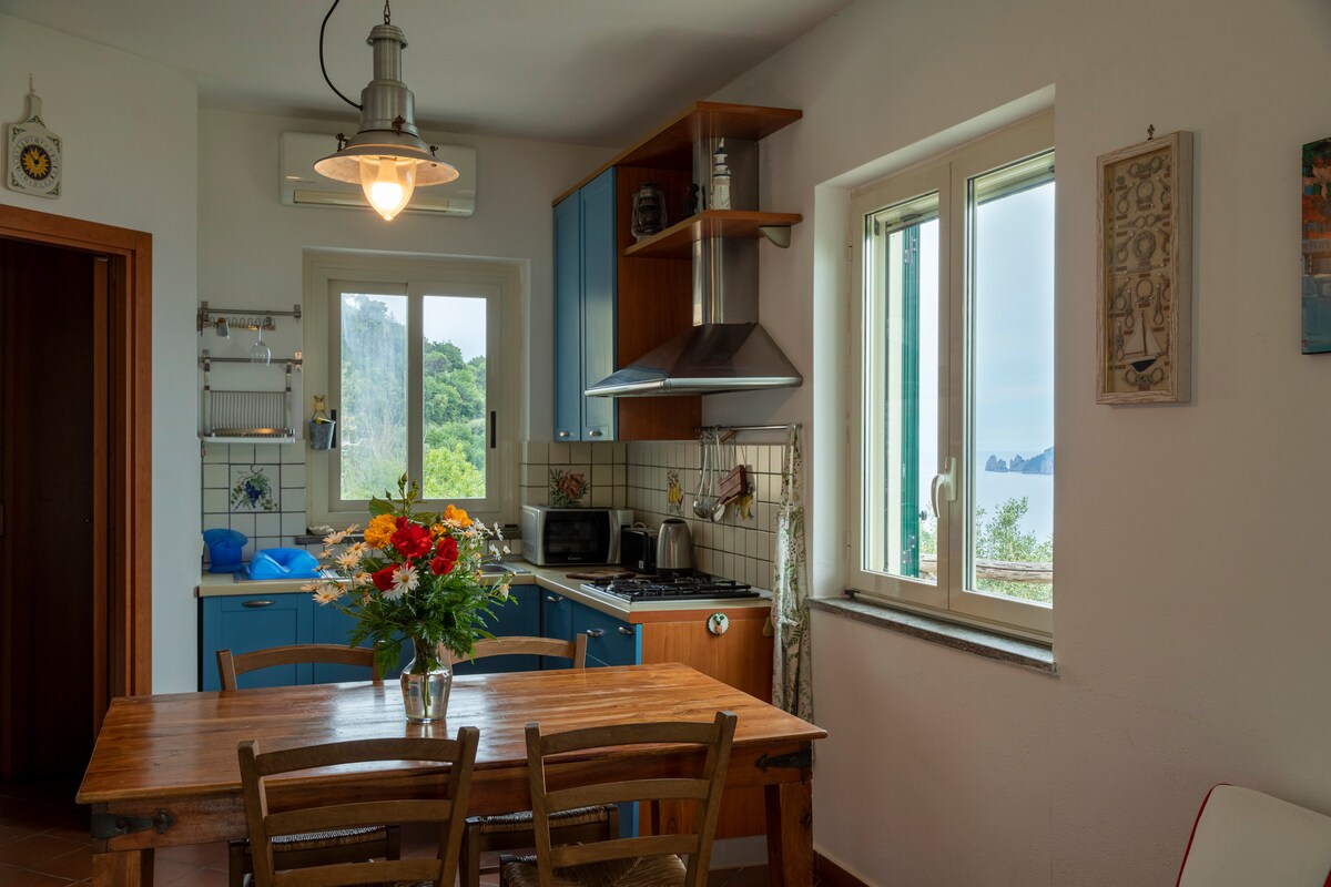 El acogedor pueblo de Nerano se extiende entre la costa de Sorrento y la costa amalfitana, a solo unos pasos del mar y de las playas equipadas. La casa se encuentra en el primer tramo del camino peatonal que desciende a la espectacular bahía de Ieranto, un patrimonio natural italiano, con vistas impresionantes. El estilo de la casa se cuida en cada detalle.