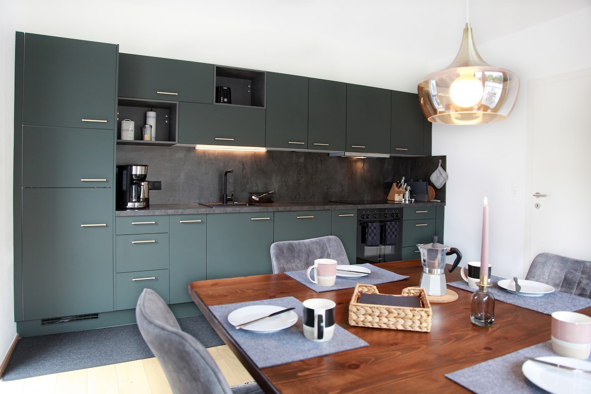 El apartamento de estilo moderno se encuentra en la planta baja de nuestra pequeña casa unifamiliar y emana la hospitalidad típica del Tirol. La hermosa vista desde la sala de estar y la terraza a los campos de Achenkirch, directamente a las montañas Rofan y a la cima Seekarspitze, ayuda a dejar atrás el estrés diario y le invita a disfrutar y relajarse. El lago Achensee, el más grande del Tirol, se encuentra a 2 km, la estación de esquí está a poca distancia a pie y el campo de golf está a 1 km.