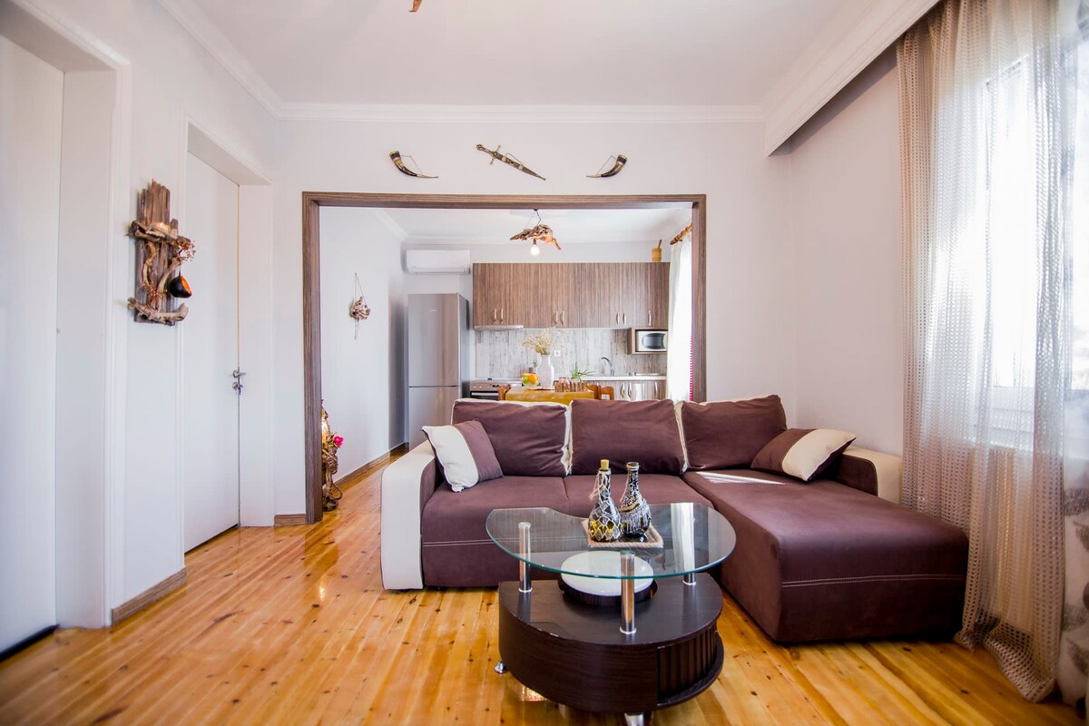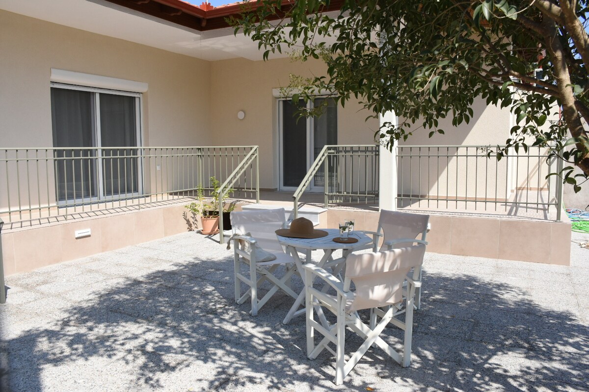 Una casa cómoda y luminosa ideal para familias, parejas o grupos de amigos, perfecta para relajarse después de un día de playa. Se encuentra a pocos pasos, a 3 minutos a pie, del mar, en una zona tranquila rodeada de árboles y naturaleza. Asprovalta, ideal para paseos nocturnos, está a solo 10 minutos, mientras que las playas de Kavala están a solo 15 minutos. La propiedad cuenta con un patio privado con espacio de estacionamiento y un jardín con árboles y plantas. Los huéspedes también disfrutan de acceso constante a Internet rápido.