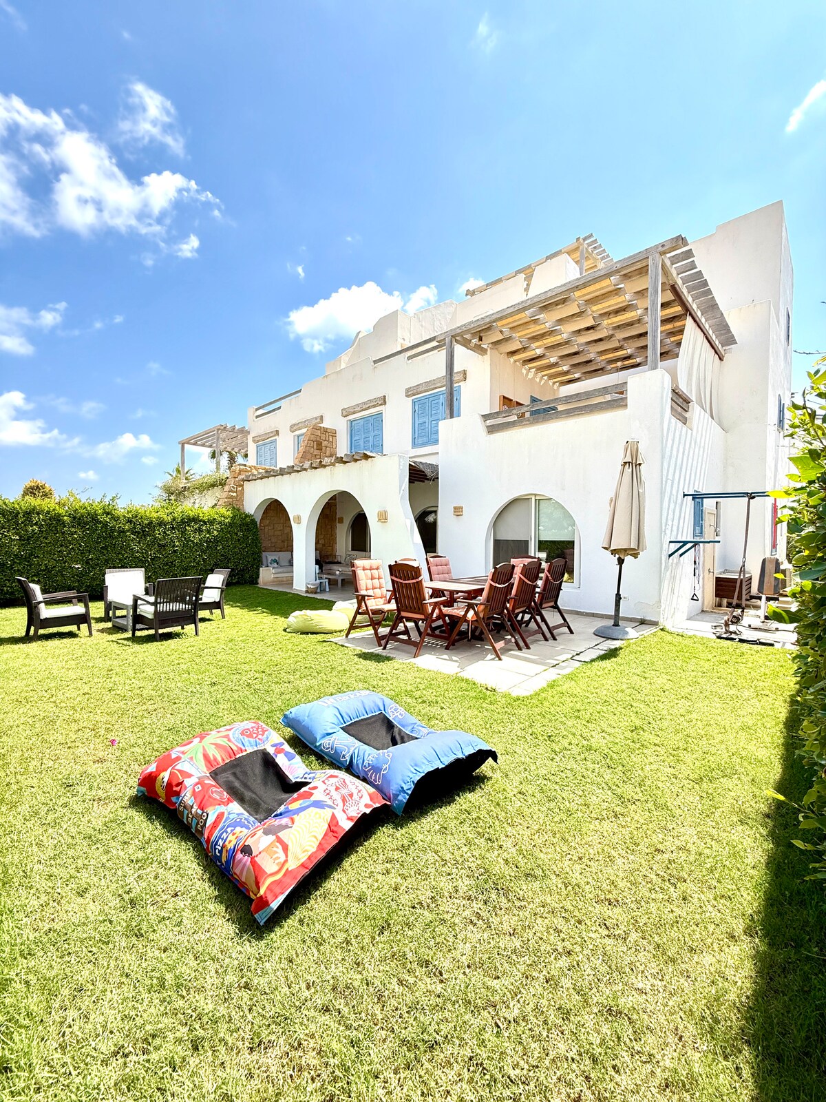 Diviértete con tu familia y amigos en esta increíble y elegante propiedad frente al mar. Este es un chalet de 3 dormitorios que ha sido configurado de manera que te ofrezca una experiencia INCREÍBLE y ÚNICA. Disfruta de la zona de asientos hundidos desde la comodidad de tu jardín privado a solo unos pasos de las hermosas aguas cristalinas del mar Mediterráneo. ¡Es🌊 ✨ hora de crear recuerdos especiales! 🏖️ 🇪🇬