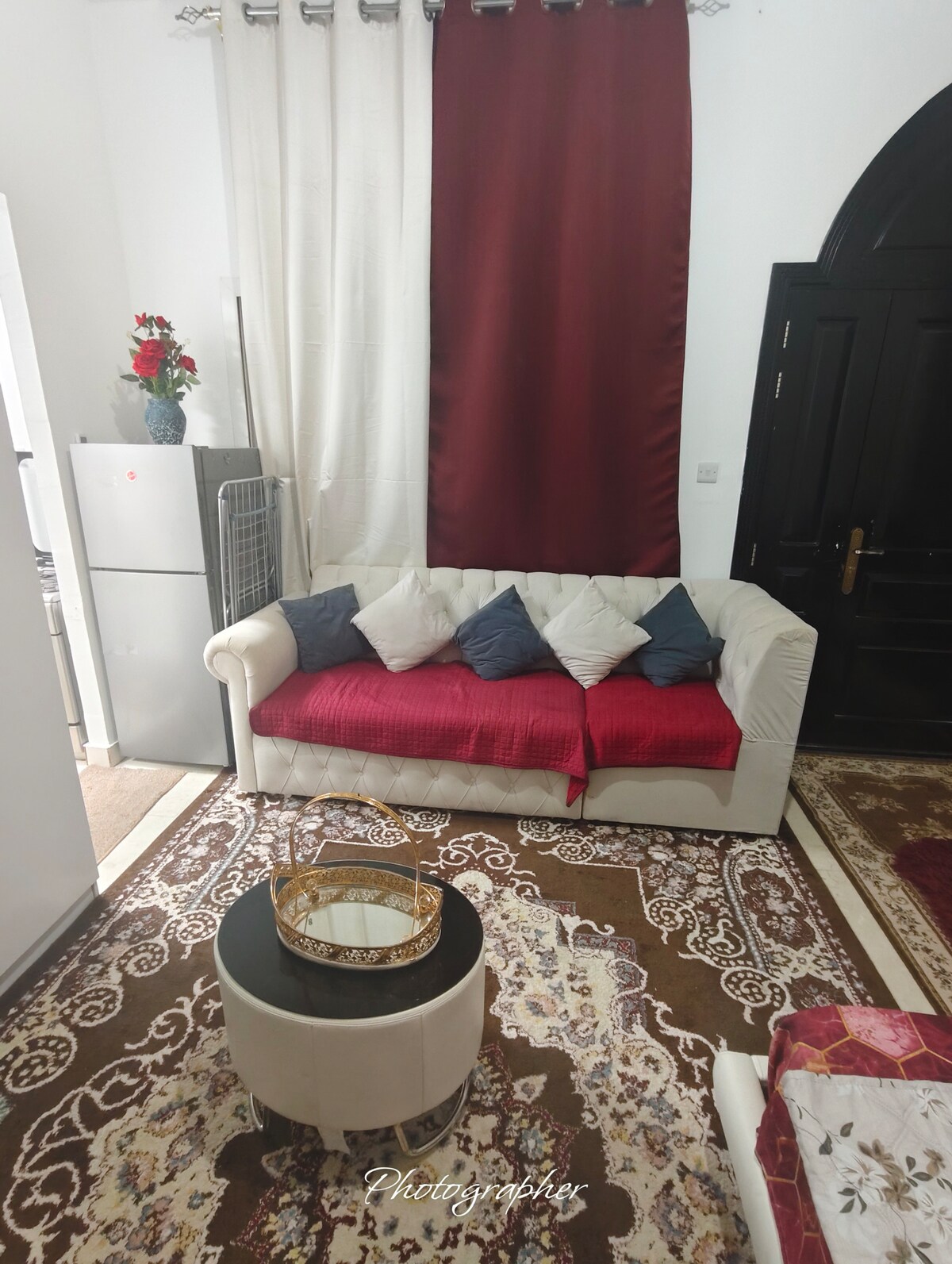Stylish, spacious studio near Zayed Airport with decorative walls, a fully equipped kitchen, strong AC, WiFi, IPTV & big TV. Sleeps up to 4 with a double bed, bed loofa & floor mattress. Includes workspace, clean bathroom, shaded parking & a cozy rooftop corner for relaxing nights. Calm, clean, and respectful neighborhood. Close to supermarket & Makani Mall. Just 35 mins to major cultural spots. Perfect for comfort, work, and leisure.