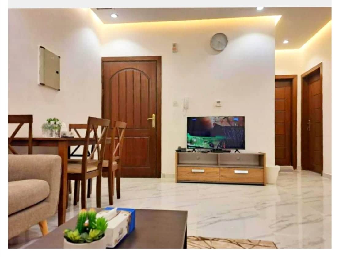 ✨ A Prime Location with Great Amenities ✨ • Just two minutes from the beach, opposite Al Raya Tower, and close to Souq Al Mubarakiya. • Jacuzzi in the living room. • Fully equipped coffee corner. • Very comfortable beds. • Quiet area perfect for families. • Grocery store in the building. • Ladies’ salon and laundry services nearby. • Private basement parking. 🔸 Important Note: For families only—no young men allowed.