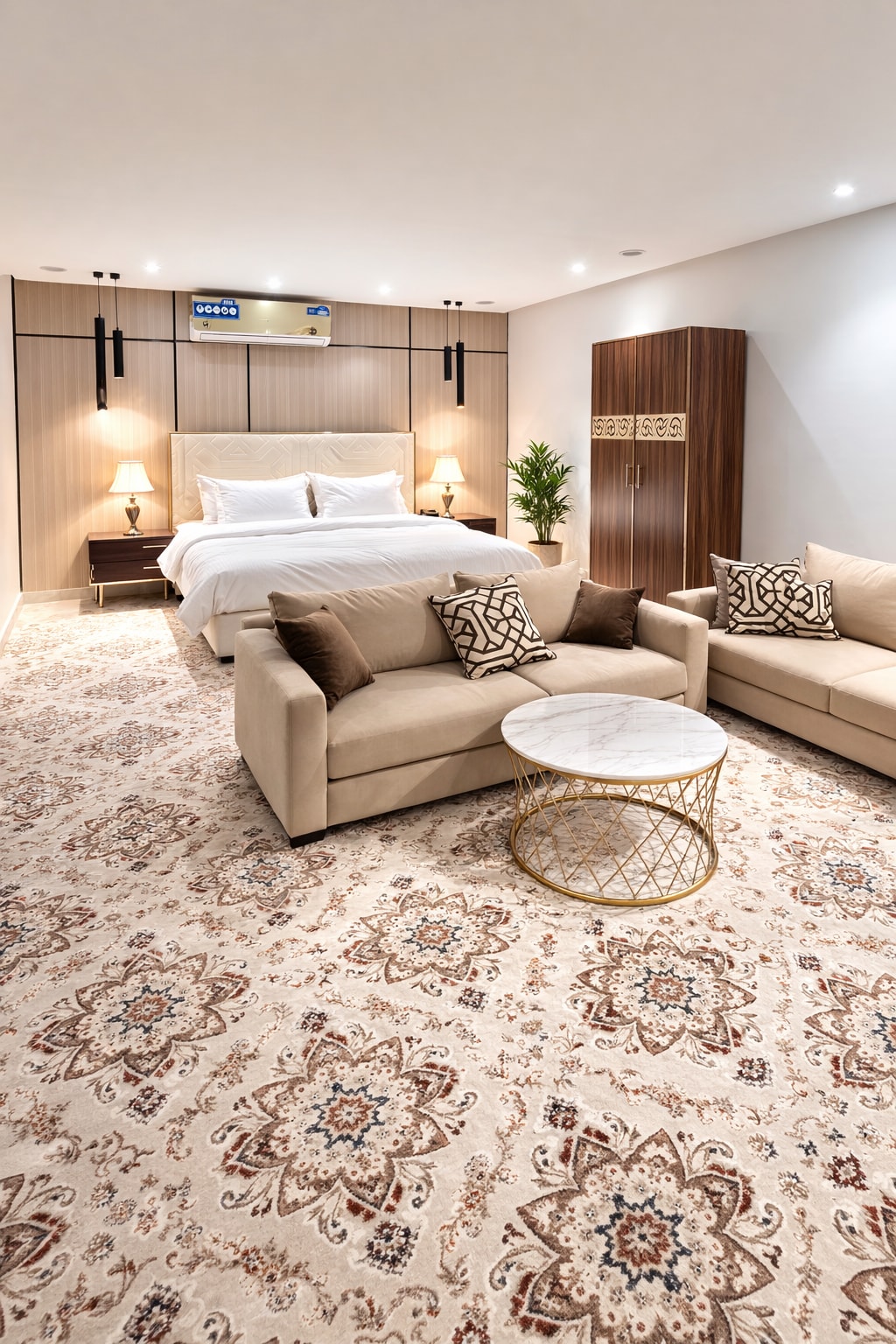 Te damos la bienvenida a Hemzah, un elegante apartamento de hotel con un auténtico carácter Asiri, diseñado para ofrecerte una experiencia de alojamiento única que combina el patrimonio y la comodidad moderna. Ubicado en una ubicación distintiva y cerca del campus, el apartamento ofrece todo lo necesario para una estancia tranquila y cómoda, ya sea que estés en un viaje de negocios, una visita religiosa o una recreación. 🛋 Detalles del anuncio: Un dormitorio espacioso con una decoración inspirada en el arte y una cama cómoda que ofrece un sueño tranquilo. Pantalla inteligente de 75 pulgadas Baño de lujo con todos los suministros