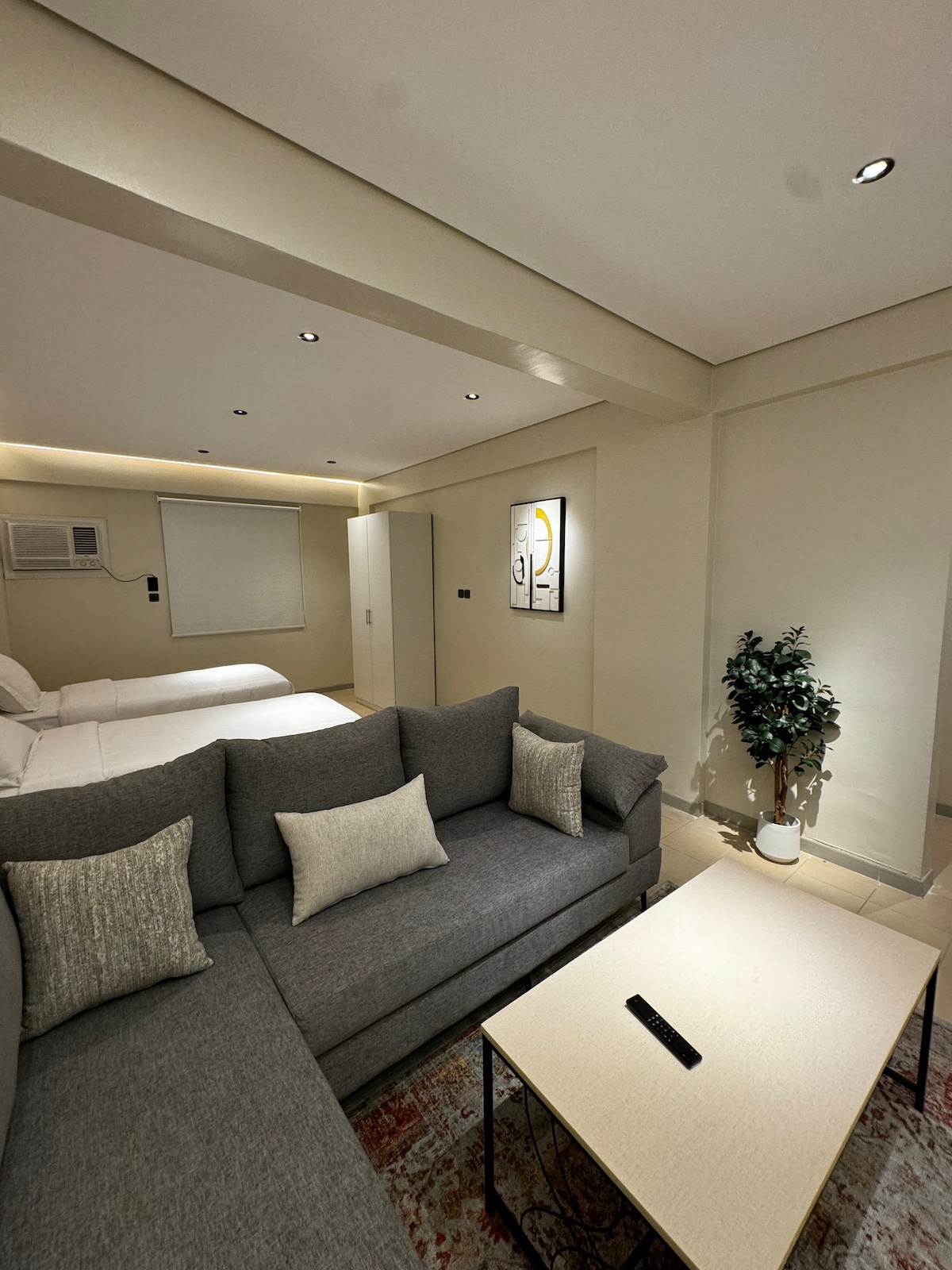 Apartamento tranquilo con un dormitorio de lujo, sala de estar, cocina completa para cocinar sus comidas favoritas y baño - Está a 5 minutos en coche de la Mezquita del Profeta y a 3 minutos en coche de la Mezquita de Quba, y muy cerca de la Pasarela de Quba y la Mezquita de Jumma. 🕌 - Todos los servicios, restaurantes y tiendas están disponibles las 24 horas - Sofá para relajarse - Pantalla inteligente de 65 pulgadas conectada a wifi - La pantalla inteligente tiene todas las aplicaciones de Netflix y YouTube Le deseamos una estancia feliz...