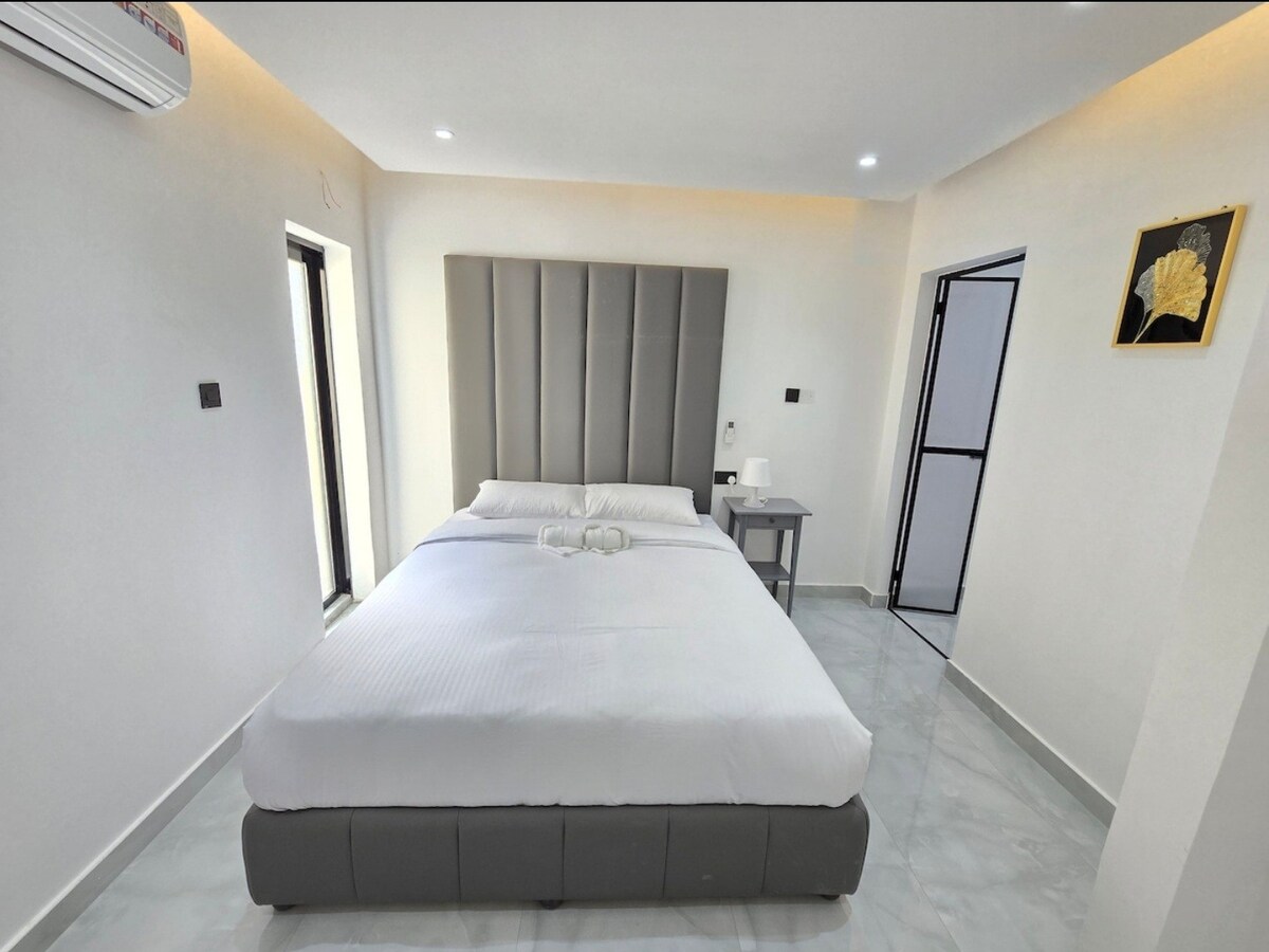 Un apartamento grande y totalmente amueblado de 2 dormitorios en el centro de Al Ain. Hay WiFi rápido y confiable disponible, fibra de ~500 Mbps. Adecuado para estancias cortas o largas y cerca de tiendas, restaurantes, cafeterías y centros comerciales. La unidad incluye una sala de estar, dos baños y una cocina totalmente equipada con nevera, estufa y lavadora. Cada habitación tiene aire acondicionado y la sala de estar tiene un televisor inteligente de 65 pulgadas. Limpio y conveniente para familias y visitantes, con un registro fácil y un soporte rápido.