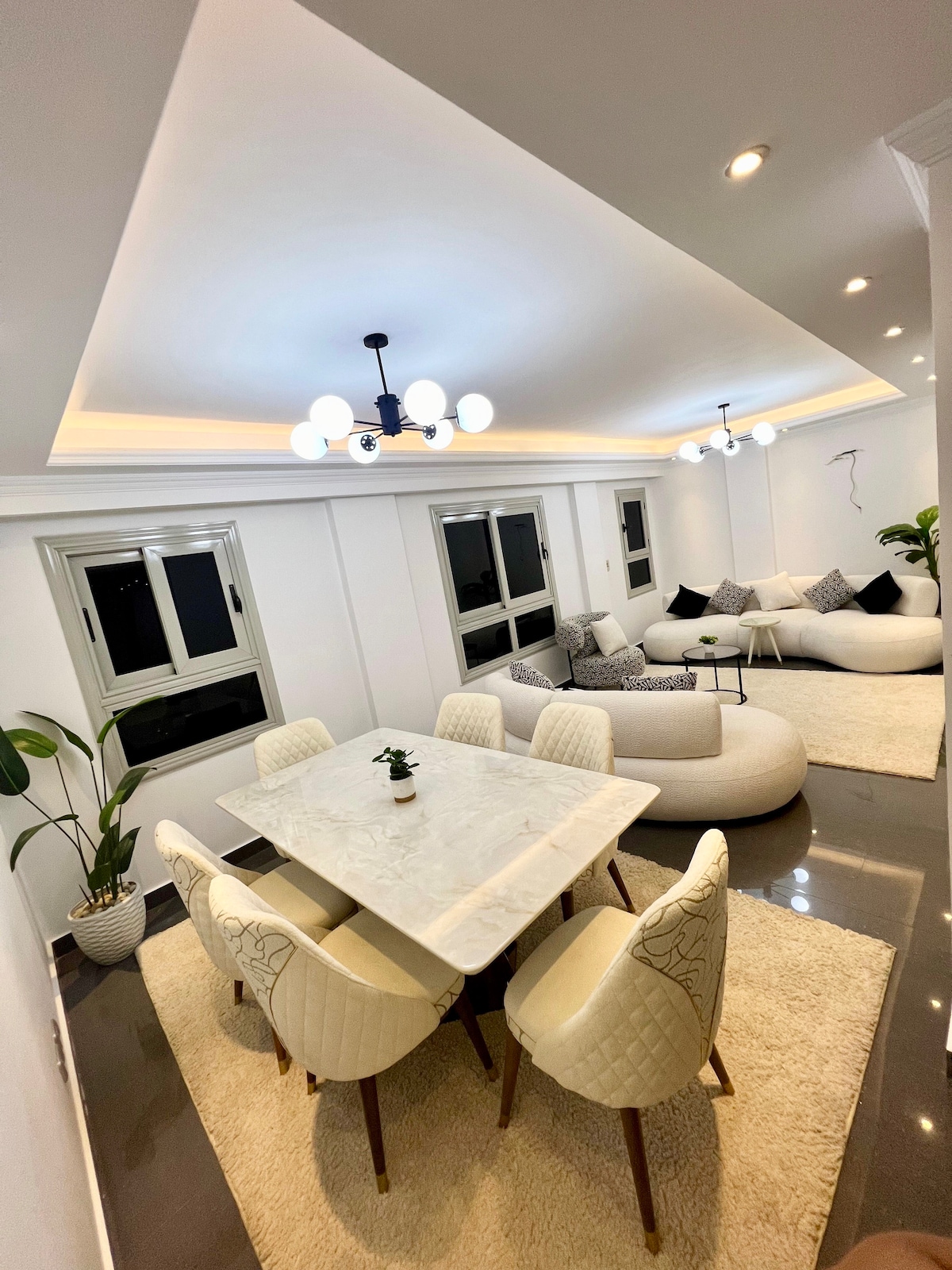 Este lugar especial está cerca de todo, por lo que es fácil planificar tu visita. Lujoso apartamento amueblado cerca del centro comercial 2 y Gateway Mall 110 metros Compuesto por: 2 dormitorios 2 baños Recepción 2 piezas Cocina totalmente equipada. ------ Totalmente climatizado con aire acondicionado frío y calor. Tiene todos los lujos Ultra Super Lux terminado Pantalla de televisión inteligente Iluminación suave, alta y controlable Cerca de servicios y una ubicación tranquila al mismo tiempo