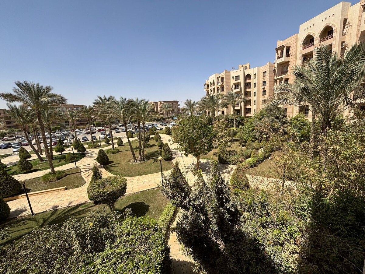 Un APARTAMENTO ENTERO con un jardín trasero situado en una zona hermosa y verde en una comunidad pacíficamente integrada que satisface todas las necesidades de los residentes. Las habitaciones están recién amuebladas, con aire acondicionado, TV inteligente y todas las comodidades que puedas necesitar, superLIMPIO y TRANQUILO. El apartamento está a 25 minutos del Aeropuerto Internacional de El Cairo. Cafeterías, restaurantes, supermercados y farmacias están cerca. Calidad de hotel con comodidad hogareña ofrecida a un PRECIO RAZONABLE.