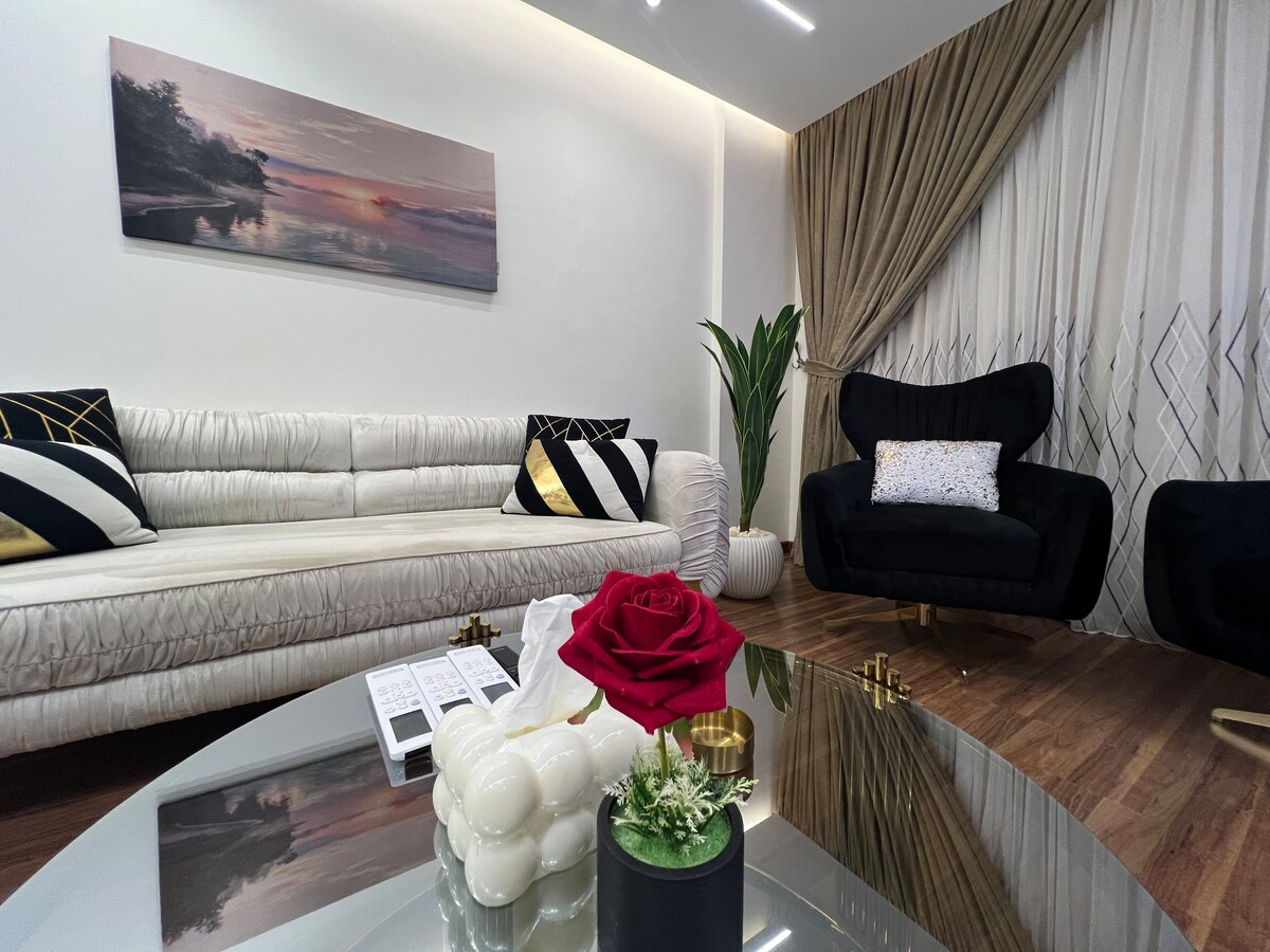 Este espacioso apartamento está totalmente amueblado y equipado con todo lo necesario para una estancia cómoda. Relájate y ve tus películas y programas de televisión favoritos en el sistema de sonido con acceso a Netflix, beIN Sports, Shahid, Watch it y Starzplay. Ubicado en una ubicación céntrica, cerca de todas las principales atracciones. A poca distancia a pie de la estación de autobuses, las tiendas y los restaurantes. Tanto si viajas por negocios como por placer, este moderno y elegante apartamento es el alojamiento perfecto.