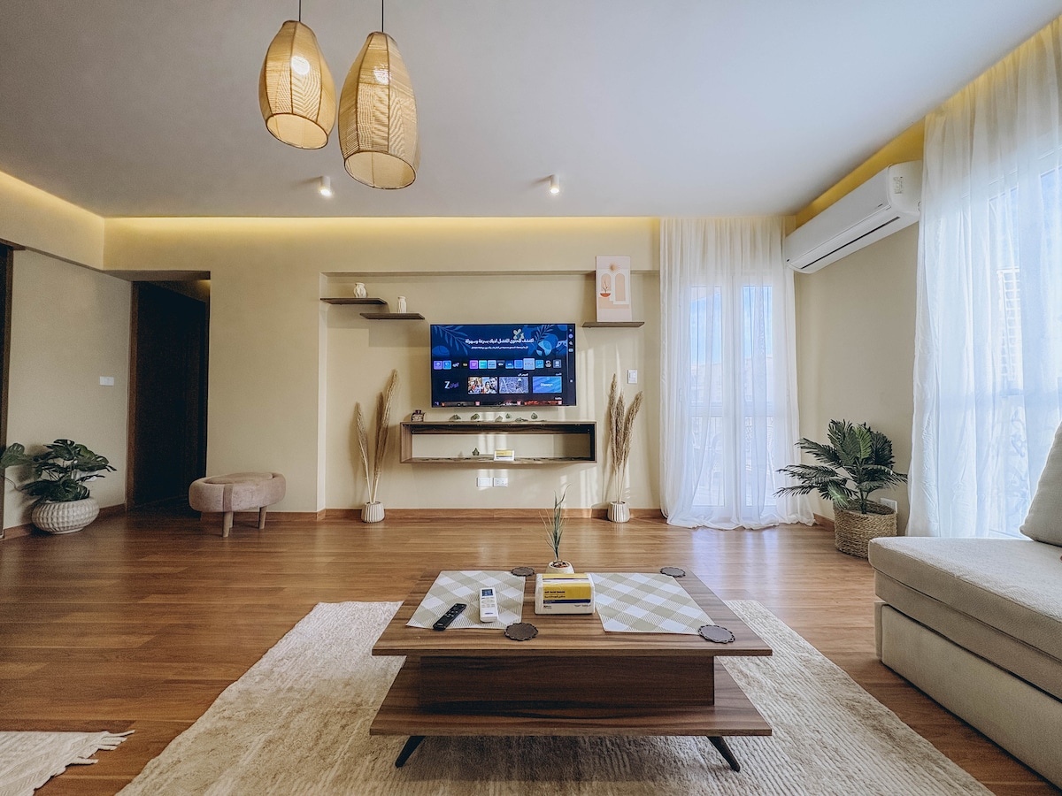 Experience the ultimate in modern comfort in our new 2-bedroom and 2-bathroom apartment suitable for 4 persons,Every inch of this stylish space is new and designed to make your stay unforgettable Our apartment is perfect for families or a business trip. You’ll find all the amenities you need, including a fully equipped kitchen, a comfortable living area Located in a prime compund, you’re just a short way from restaurants,shops in tagamoa and naser city Book now,,We can’t wait to host you!