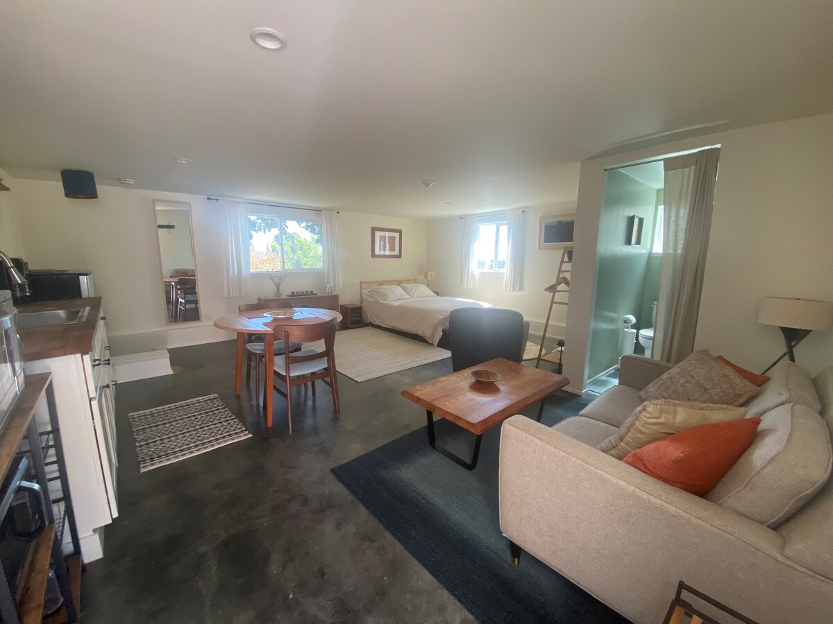 La suite en Camden Street es el lugar perfecto para trabajar a distancia o para una escapada en Oakland. Esta unidad es privada y tiene su propio acceso en el lateral de la casa. El acceso es una pasarela inclinada a través de una puerta cerrada con llave y menos de cinco escalones hasta la puerta. Este acogedor lugar cuenta con: cocina completa, cama tamaño queen, wifi rápido, escritorio con monitor, ducha de efecto lluvia y acceso al patio trasero. Ideal para parejas o personas solas. Se admiten mascotas, sin cargo adicional, pero recoge lo que tus amigos peludos dejen. Aparcamiento gratuito en la calle.