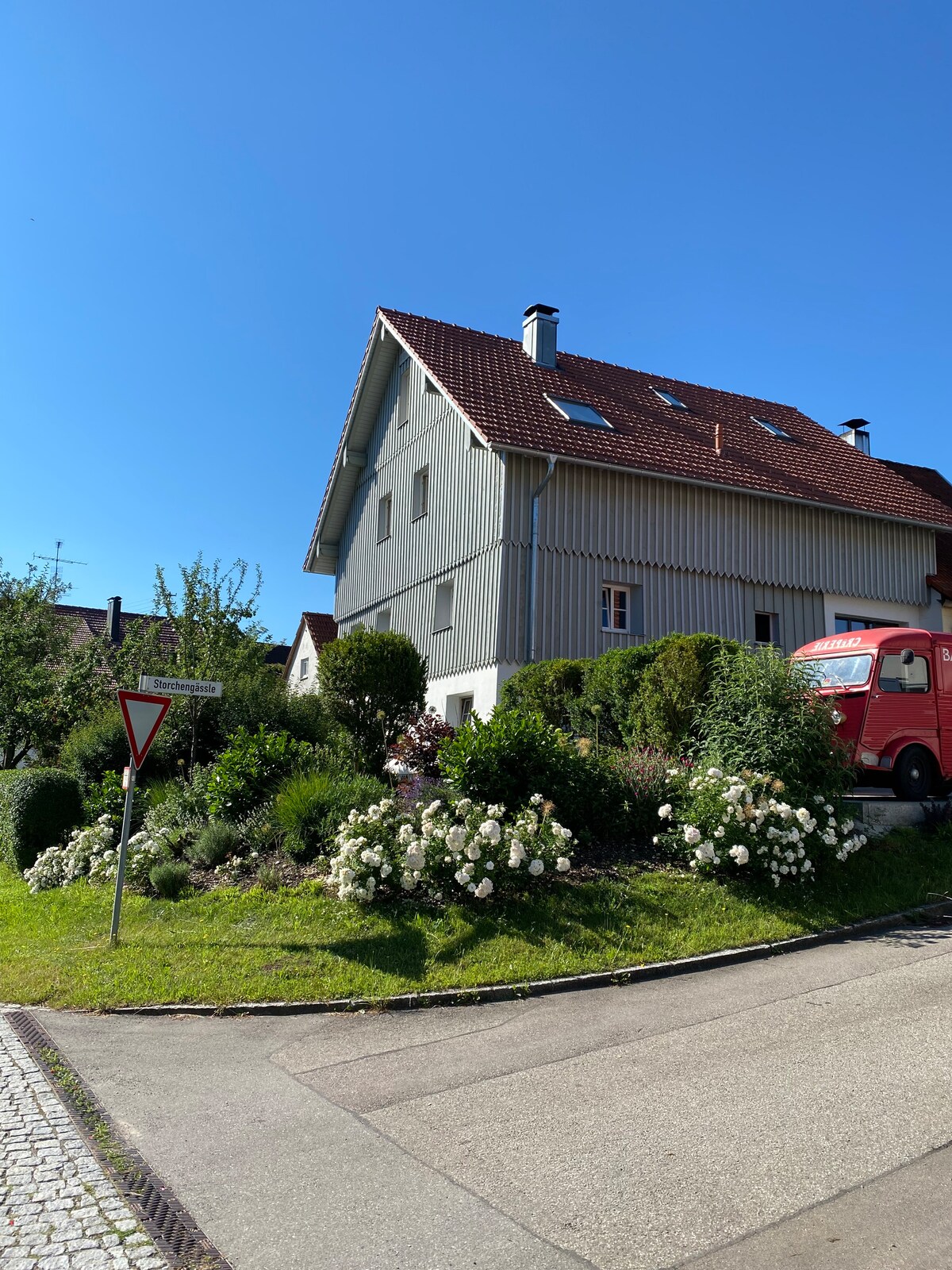 Un tranquilo apartamento en la planta baja en una gran casa unifamiliar con entrada independiente y aparcamiento privado. Un gran estudio con cama doble, sofá, sillones, TV, wifi, una selección de DVD y libros, además de una pequeña mesa de trabajo. Cocina y baño separados. Hay una silla alta y una cuna disponibles bajo petición. A poca distancia a pie de un restaurante italiano, panadería, farmacia y supermercado. Una bicicleta para hombres está disponible para alquilar. Servicio de autobús local a Biberach (línea 2)