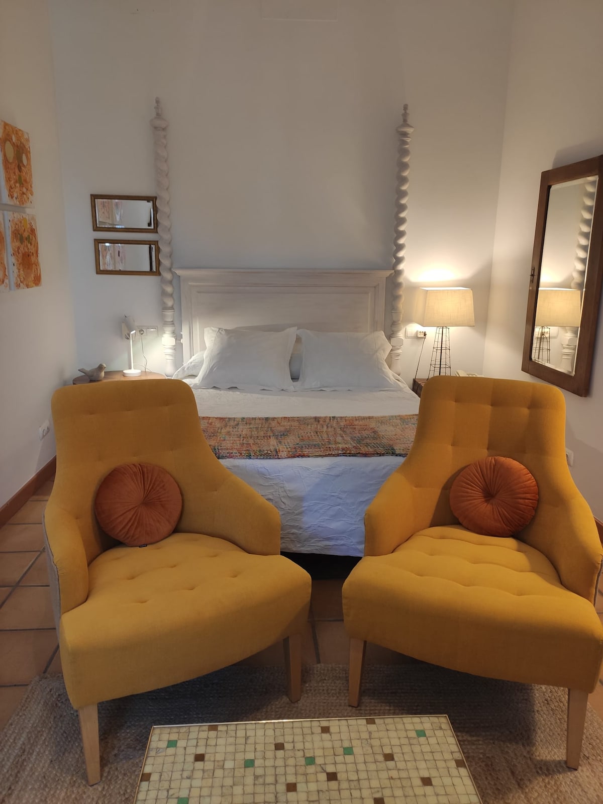 No querrás marcharte de este alojamiento único que desprende encanto. Individualmente decorada, la Habitación Doble Deluxe es ideal para una escapada romántica. Dispone de cama de matrimonio de 1.80. Es muy amplia, 28m2, y muy acogedora con vigas de madera, balcón con vistas al jardín, zona para sentarse a leer, escritorio nevera y caja fuerte. Su baño privado tiene bañera de hidromasaje y secador de pelo.