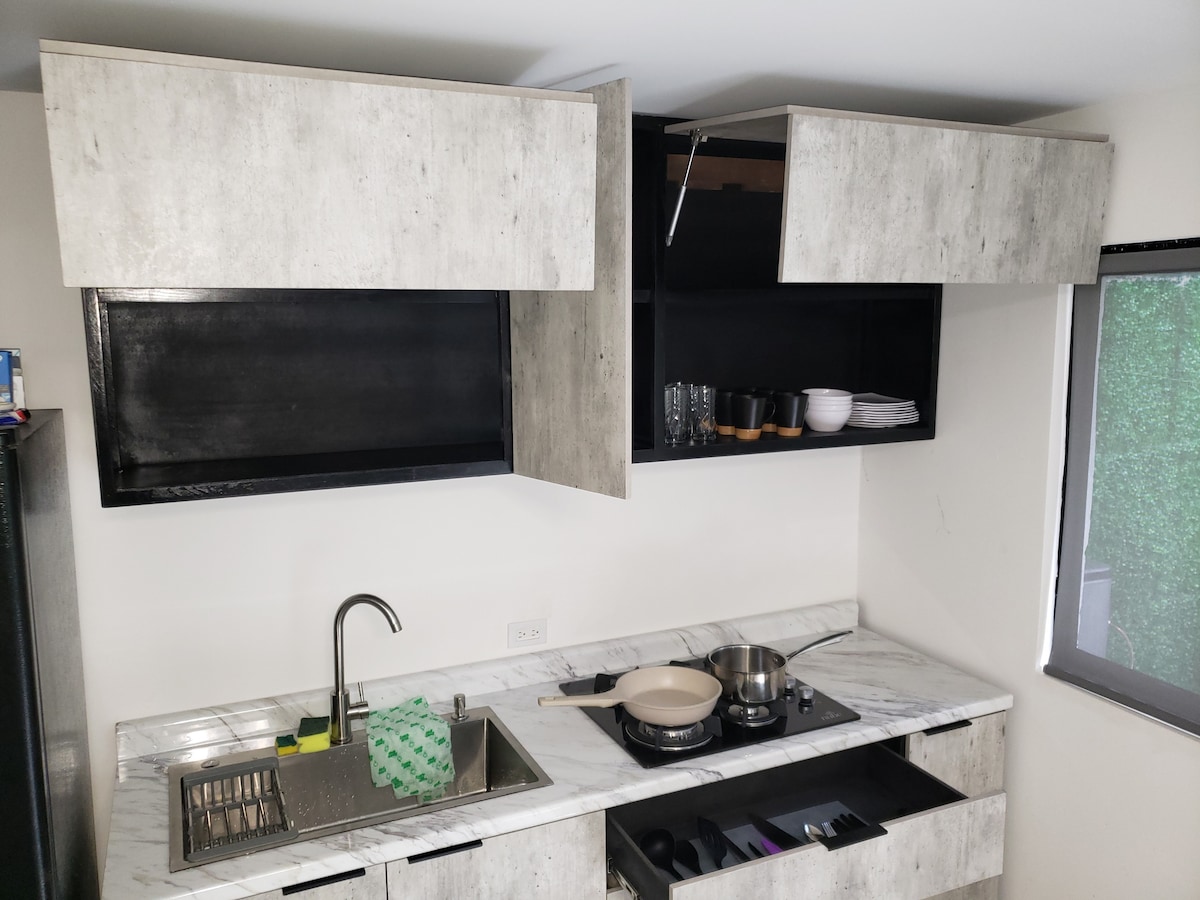 Diviértete con tu pareja en este alojamiento con estilo. con todas las comodidades, wifi, lavasecadora, plancha de vapor, aire acondicionado y cocina completamente equipada, con entrada para silla de ruedas, puedes entrar a partir de las 4 de la tarde y salir antes de las 11:59 a.m.