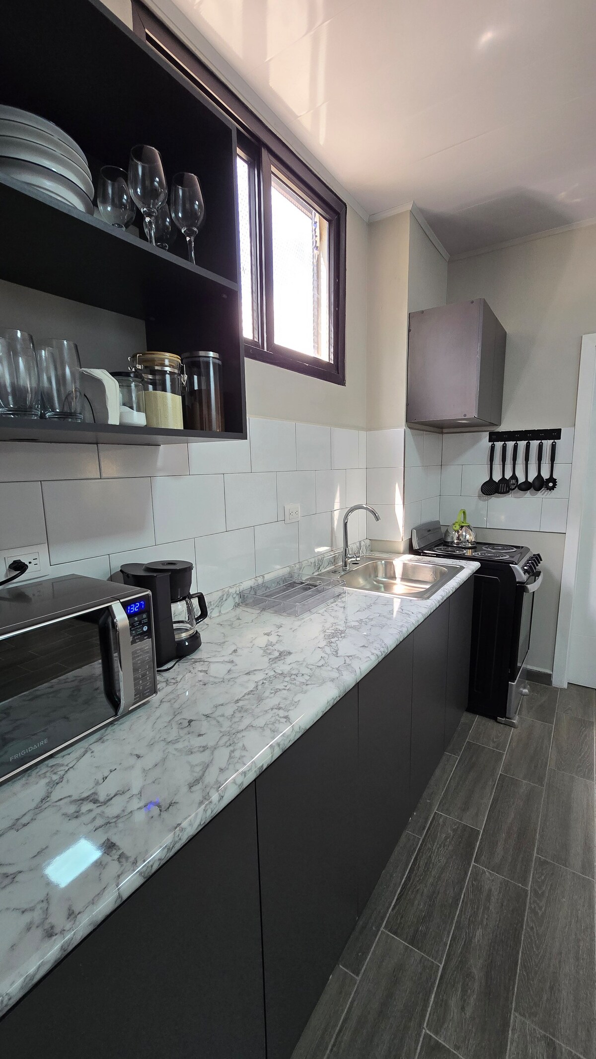 Disfruta de una experiencia placentera, privada y segura en este alojamiento. Ubicado en un barrio céntrico desde donde podrás ir andando al centro de la ciudad (800 mts y 10 mins caminando) y esta en una 2da planta de un edificio moderno de reciente construcción. Cuenta con salón-cocina muy comodos y equipados. La habitación es amplia y muy confortable. El baño es muy espacioso, limpio y amplio con ducha con agua caliente. El apartamento es muy acogedor. Te va a gustar.