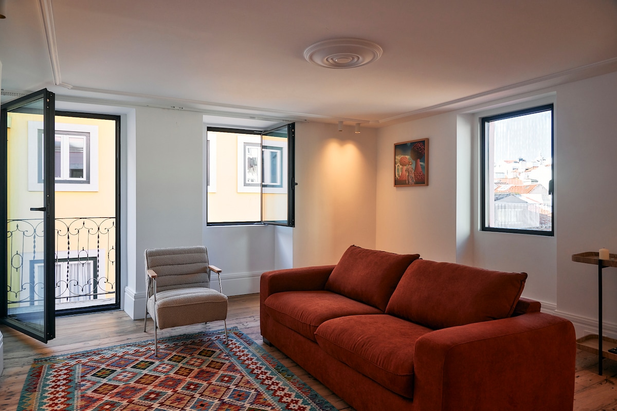 Este es un hermoso apartamento nuevo, totalmente renovado en la mejor ubicación que puedes tener, en el corazón del distrito de Baixa, en el centro de Lisboa. Es de 2 dormitorios con 2 baños, aire acondicionado y ascensor. Cuenta con un largo balcón donde podrás disfrutar de las vistas al río y a una de las calles más conocidas de Lisboa. Esta es la ubicación perfecta, donde encontrarás teatros, librerías, cafés de estilo antiguo, galerías, tiendas, restaurantes, bares, monumentos, el río y miradores, ¡todo a poca distancia a pie! :)