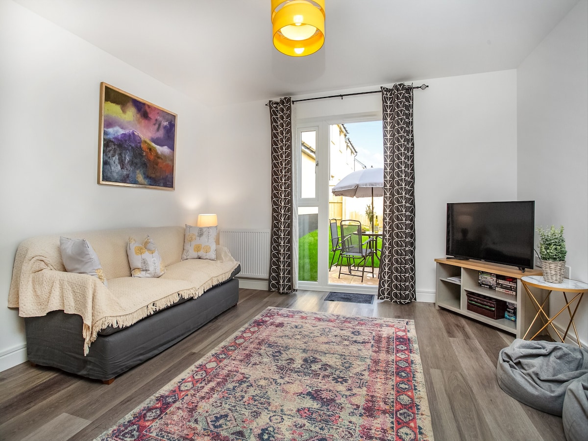 Welcome to Primrose Studio, a self-contained apartment on a quiet, private drive - just 2 mins walk to the centre of Totnes. Satnav won’t find us - our check in directions will ! Beautifully converted in 2021 - with slate/wooden floors with underfloor heating, wood-burning stove, bathroom with roll-top bath and walk-in shower, and a separate fully-equipped galley-kitchen. The studio has its own front door, with its own parking space right outside. Ideal for couples, we welcome family pets too.