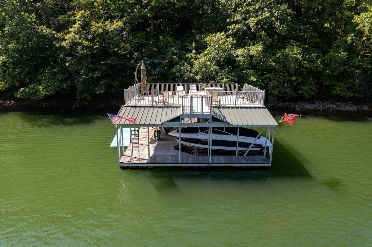 Pasos al lago Lanier: escapada boscosa con muelle para botes