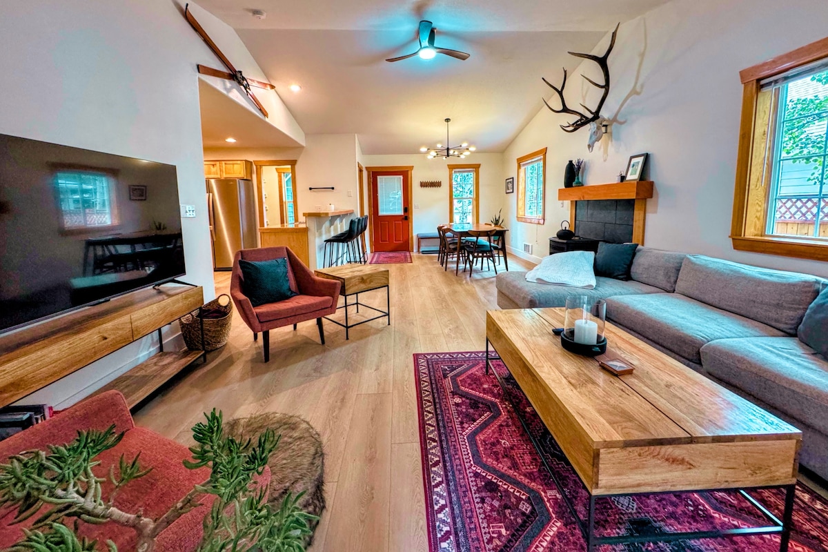 1500 pies cuadrados ubicados dentro de los límites de la ciudad de Driggs. Restaurantes del centro, tiendas de comestibles a unas manzanas de distancia. A 10 minutos a pie de la parada de transporte al centro vacacional de esquí y verano Grand Targhee (a unos 15-20 minutos). La casa está limpia, es más nueva y eficiente, con excelente luz natural. ¡La decoración es más moderna, cómoda/tradicional y llena de carpintería natural personalizada! Patio privado de 1/4 acre en un barrio tranquilo.