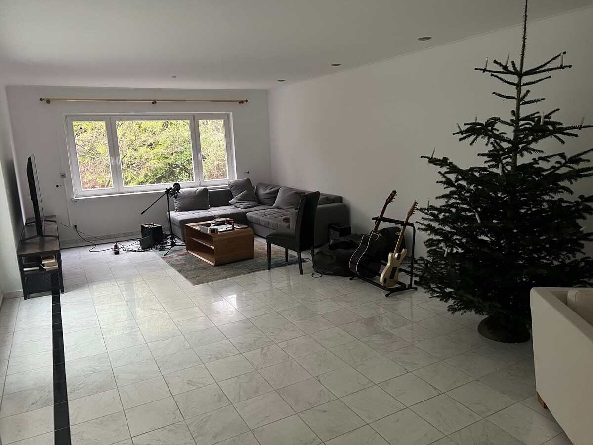 Luminoso apartamento independiente en zona verde, cerca de la ciudad (10 km) y del aeropuerto (8 km). Es un apartamento independiente con entrada independiente, baño privado, así como una pequeña cocina (nevera, microondas, cocina).El apartamento está situado en una zona tranquila en las afueras de la ciudad y se tarda 5 minutos en llegar al autobús y 10 minutos en llegar al tren. Trayecto en tren a la ciudad de 25 minutos.