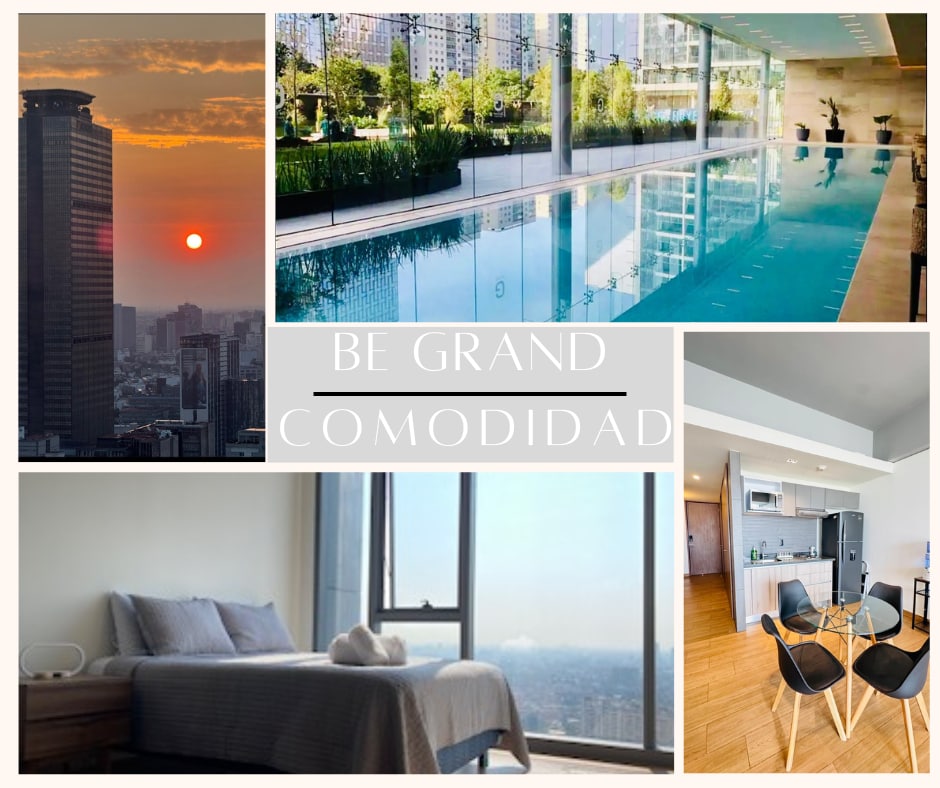 Departamento de Lujo en el piso #26 con una excelente vista a la Ciudad Cuenta con tres recámaras y 2 baños completos. - Habitación 1. 1 Cama King-Size - Habitación 2. 1 Cama Queen-Size - Habitación 3. 2 Camas matrimoniales Sala comedor Área de lavado con lavadora/secadora El departamento es Limpiado y Sanitizado al 100% después de cada estancia. El edificio es antisísmico - Alberca - Jacuzzi - Vapor - Cine - Ludoteca - Gym -Billar -SPA -Jardines