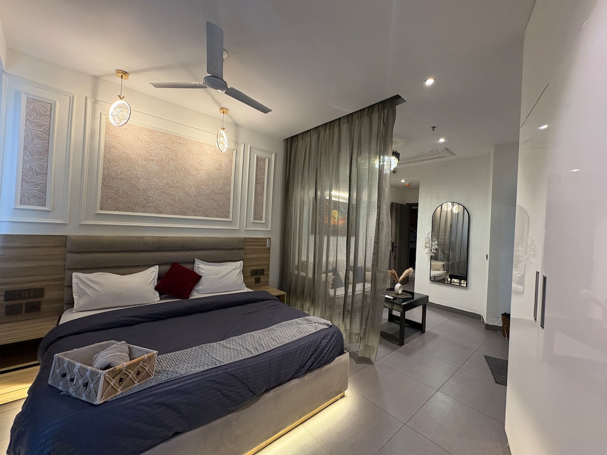 Apartamento de lujo en el piso 41 | Vista al río Yamuna • Vida elevada en la torre más alta de Delhi NCR • Vistas panorámicas al río Yamuna desde un piso premium. • Wifi de alta velocidad de 200 Mbps, ideal para trabajo a distancia y estancias largas. • Entrega de comida sin problemas (Swiggy, Zomato y más) • Fácil acceso en taxi y cerca de las principales atracciones de la ciudad. • Comodidades en el complejo: tienda de comestibles, salón de belleza, cafeterías y restaurantes. • Estacionamiento disponible fuera del complejo.