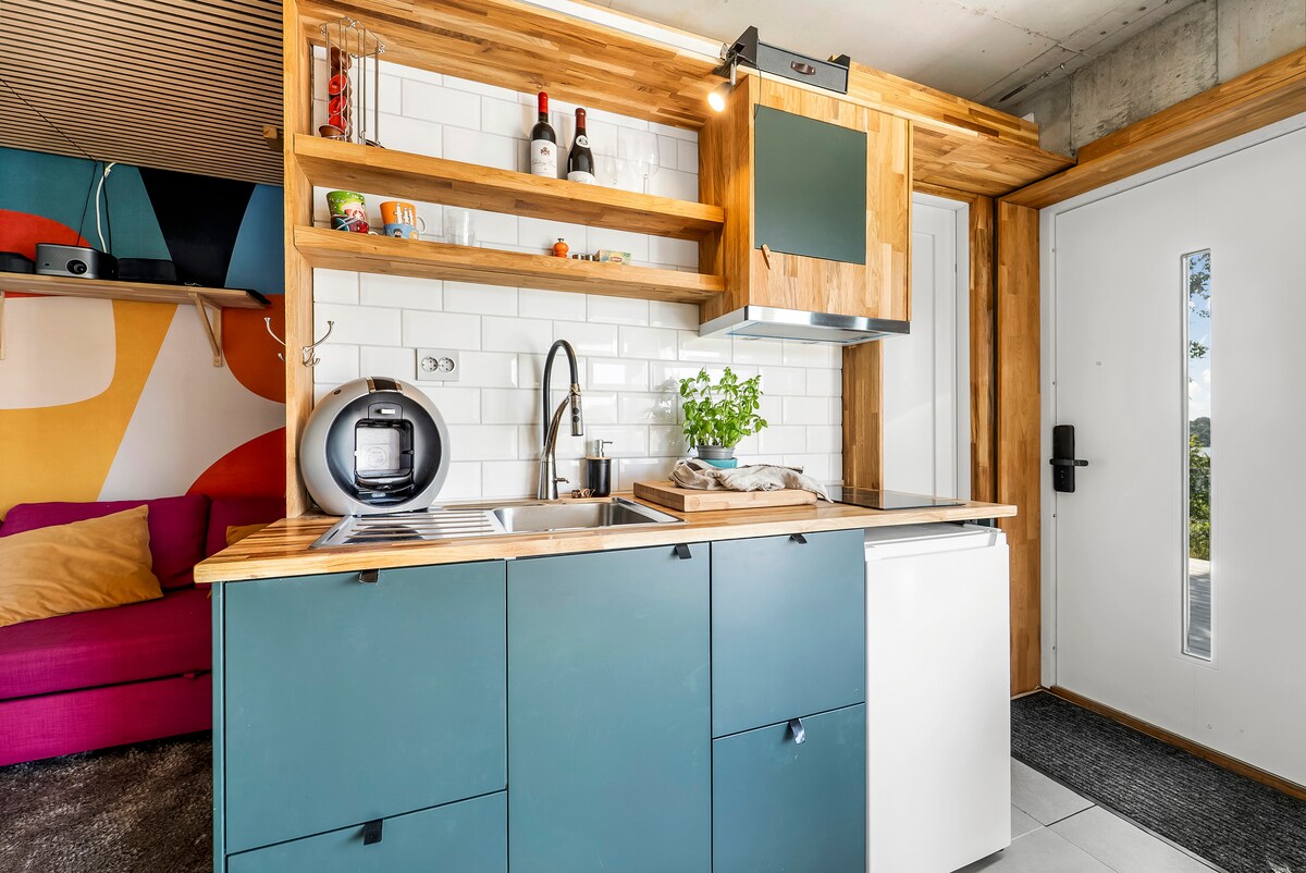 Recarga tus lujos en este alojamiento único y tranquilo. Preciosa casita romántica con una vista que da tranquilidad. ¡Gran terraza/muelle con muebles de exterior, parrilla de gas y jacuzzi de leña! (¡IMPORTANTE! El jacuzzi NO tiene burbujas ni masajes, solo agua caliente deliciosa). En el interior hay un dormitorio con una cama doble, baño con inodoro y ducha, cocina con todo el equipo necesario y sala de estar con TV. Loft/loft con 2 camas individuales, 1,80 de altura del techo. Tabla de SURF de remo gratuita y kayak pequeño.