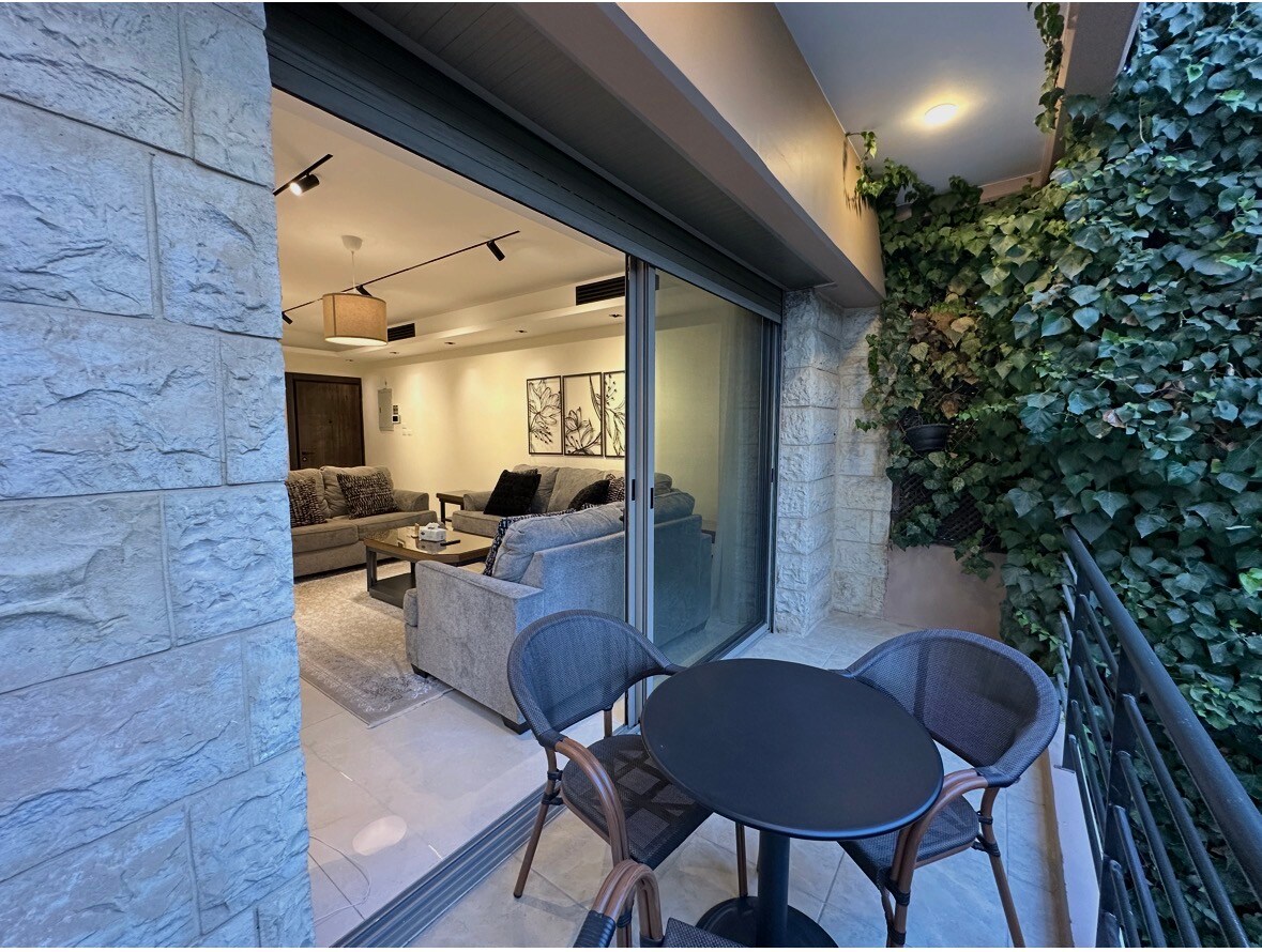 Una hermosa azotea ubicada en el corazón de la ciudad de Ammán, específicamente en Jabal Al-Hussein, el apartamento está completamente amueblado con muebles nuevos y modernos, tiene una habitación de una cama con dos camas, una cocina abierta, una bonita sala de estar abierta a una enorme terraza que tienen una magnífica vista a toda la ciudad de Ammán. el departamento está a diez minutos del antiguo mercado de Jab, cerca del lugar para dejar de fumar, perfecto para relajarte y disfrutar de un apartamento de estilo moderno con una increíble vista de Ammán desde su terraza