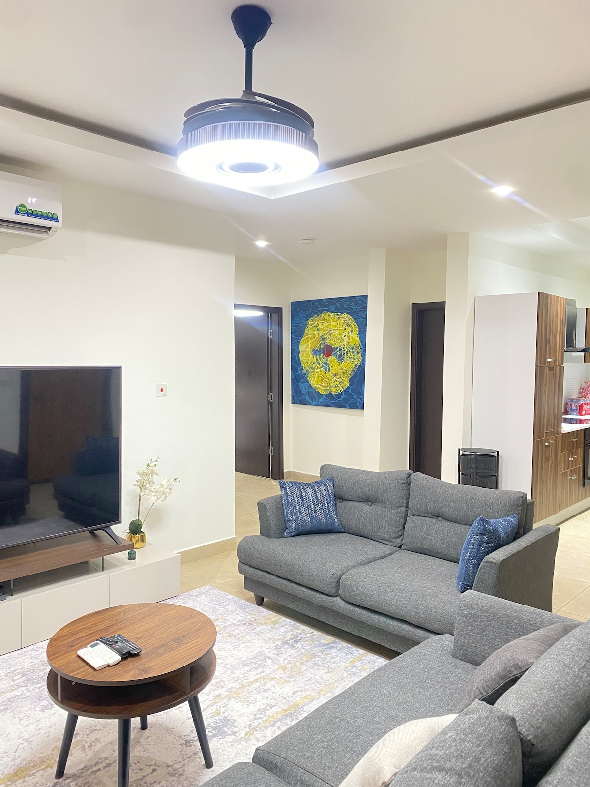 Bienvenido a Doreen Deluxe es un apartamento de lujo de 2 dormitorios y 2,5 baños en el primer piso en Lakeside, Accra. Ambos dormitorios están en suite y ofrecen comodidad y privacidad. Disfruta de una cocina moderna con todos los electrodomésticos, amplias áreas de estar y ropa de cama lujosa, wifi súper rápido y aire acondicionado. El generador de respaldo garantiza electricidad. Relájate en la terraza privada y explora el barrio sereno con parques, restaurantes y servicios cercanos. Relájate en este espacio tranquilo y elegante.