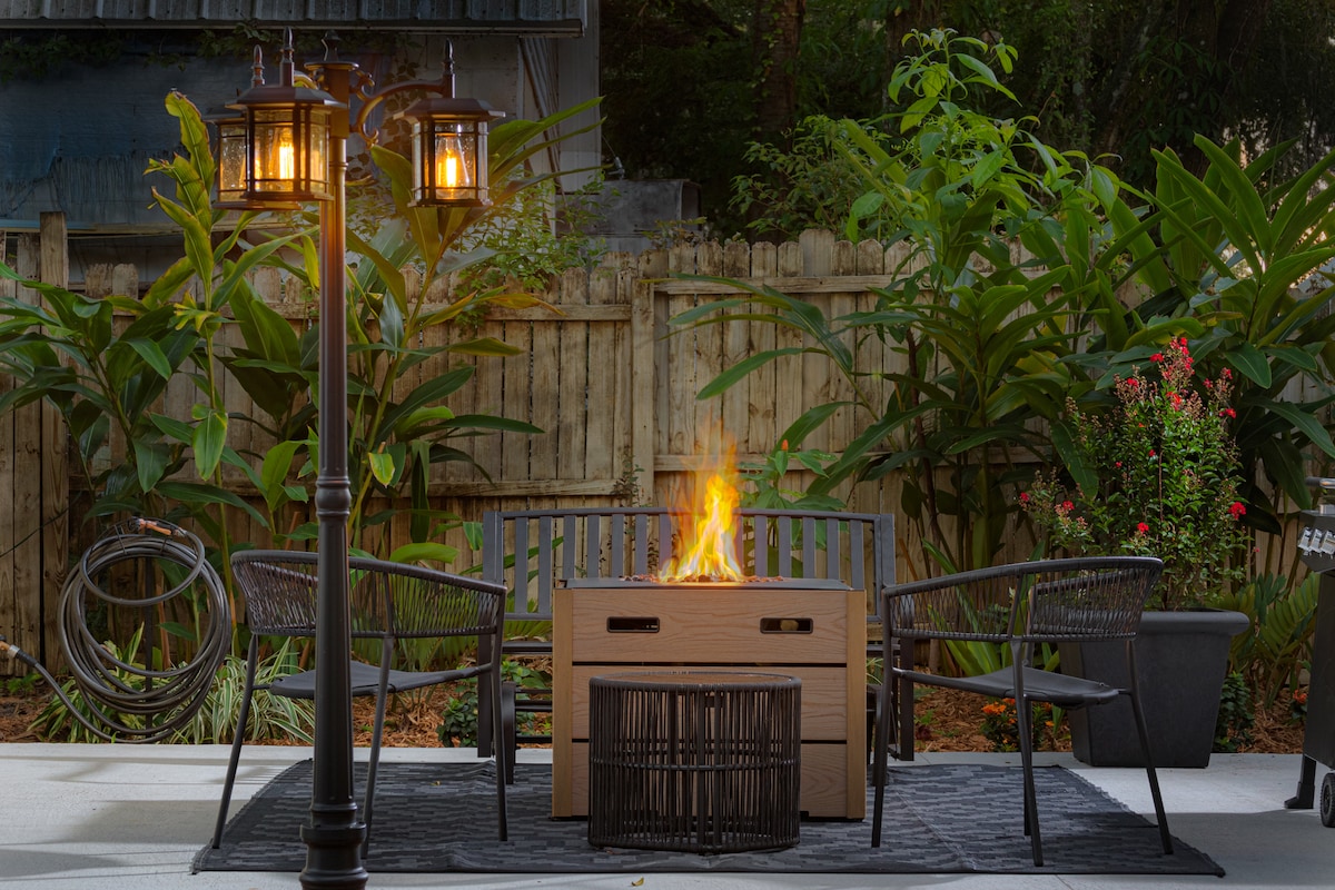 Estacionamiento en la calle A 4 minutos en auto/ 15 minutos a pie del hermoso centro histórico A 3 minutos en auto de la playa. Pases de invitados al gimnasio/piscina/sauna de vapor/yoga ¿Quieres alejarte del ajetreo y el bullicio de la ciudad? Esta cabaña rodeada de exuberantes jardines tropicales es el lugar perfecto para recargar energías. El centro de la ciudad y las pintorescas playas del parque estatal Anastasia están a pocos kilómetros en auto. Con amplias comodidades modernas y de vida, la cabaña ofrece el máximo confort y comodidad.