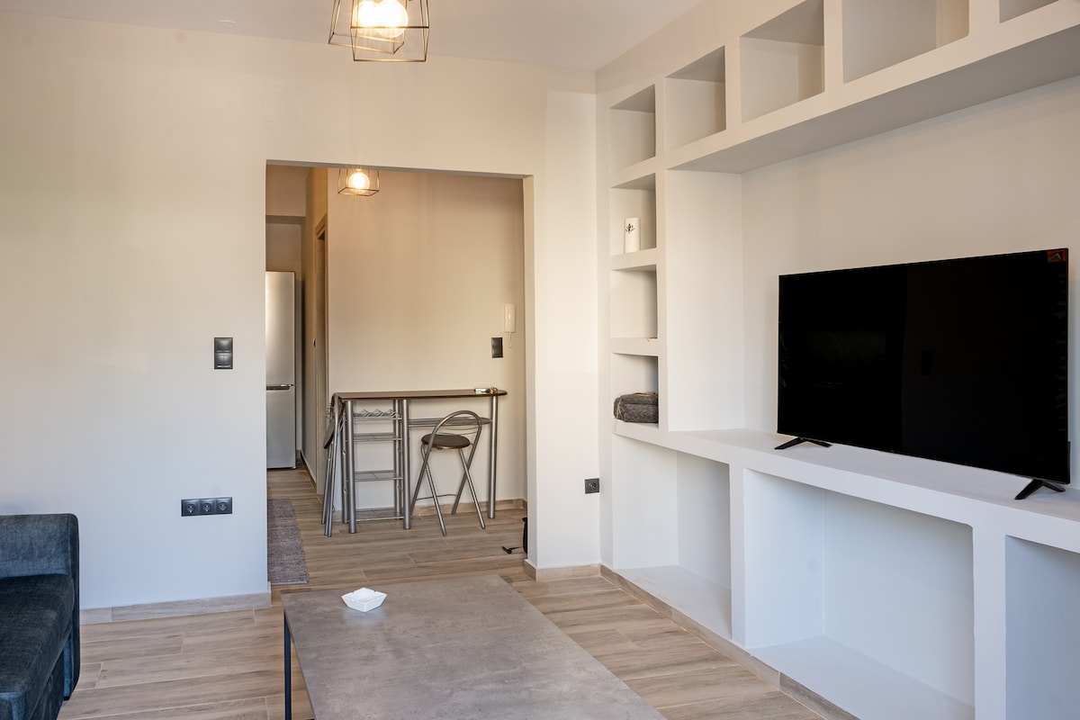 Estudio de primera planta recién reformado en el corazón de Kalamata, en las inmediaciones de la plaza central y el Centro Internacional de Danza. Cuenta con 1 cama tamaño king y una cocina totalmente equipada. Moderno, bien amueblado y totalmente funcional. Es adecuado para parejas, familias con bebés, profesionales o cualquier otra persona que desee relajación y tranquilidad.