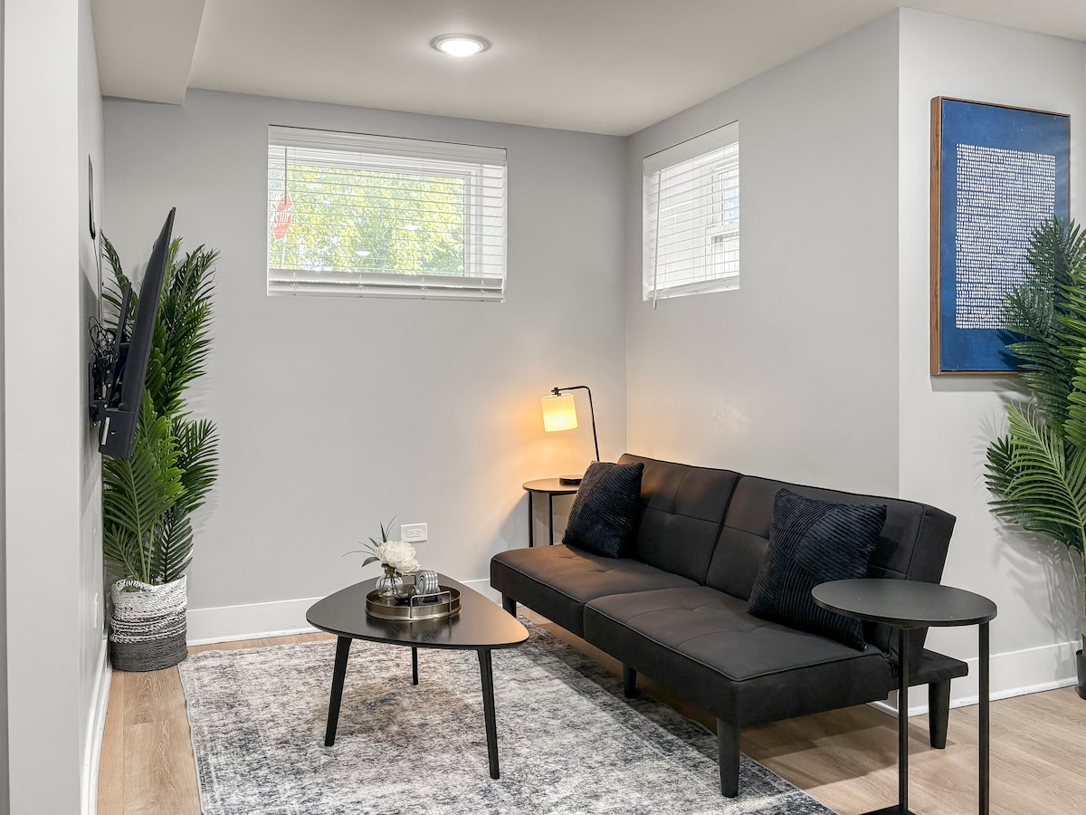 Stylish, centrally-located getaway perfect for a visit to the Windy City! This charming space was freshly renovated in early 2022 with ample space (nearly 1500 sq ft), a Peloton exercise bike, and kitchenette. Located in the trendy Southport Corridor blocks from the best of Chicago's north side; shopping, fine dining, bars, Wrigley Field, close to Brown line train public transit with Whole Foods at the end of the block!
