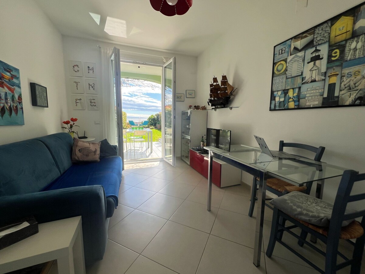 Elegante apartamento con vistas al mar en Pietra Ligure. Disfrute del porche y de dos jardines privados de uso exclusivo. El complejo ofrece SPA (fines de semana hasta junio 2026), gimnasio (abierto a diario por turnos) y piscina panorámica con zona infantil (desde el 15/6). Plaza de parking incluida. Playas y centro a 10-15 min a pie (pendiente); Lidl a 10 min. Confort y estilo a un paso del mar. No se admiten mascotas. ¡Te esperamos!