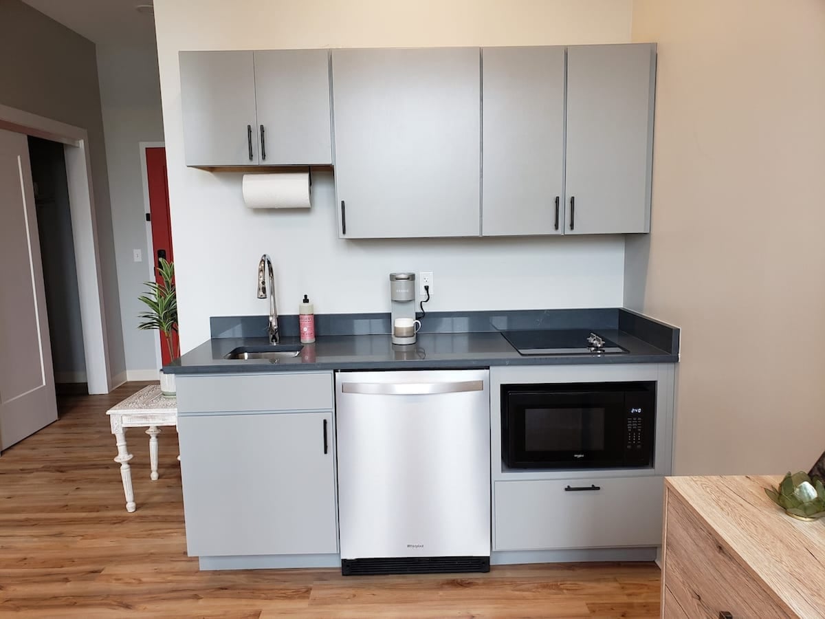 Tómate tu tiempo para renovar tu paz en este hermoso y tranquilo departamento tamaño queen. Las plantas verdes, las obras de arte modernas y el diseño limpio en zonas verdes y grises relajantes evocan la felicidad de tu spa favorito, mientras que los servicios como la zona de cocina equipada, el baño completo y la cómoda ropa de cama cubren las necesidades para que puedas centrarte en tu relajación. ¡Este estudio admite perros! Se puede poner a disposición una cama para perros previa solicitud.