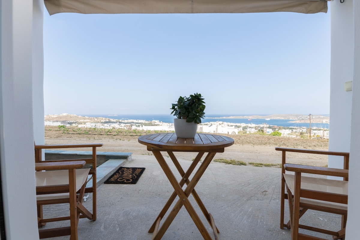 Nuestra tradicional casa de piedra cicládica (65 metros cuadrados) se encuentra en el centro del pueblo y tiene un maravilloso jardín con limoneros, naranjos, granados, albaricoques, aguacates y uvas, donde podrás relajarte y disfrutar de la naturaleza. El apartamento tiene una vista panorámica del pueblo y una impresionante vista al mar de la isla de Naxos. La casa es ecológica, apta para trabajar y tiene energía solar. El wifi también es fiable para trabajar. Aceptamos estancias largas. Todo lo que necesitas está a 20 metros a pie.
