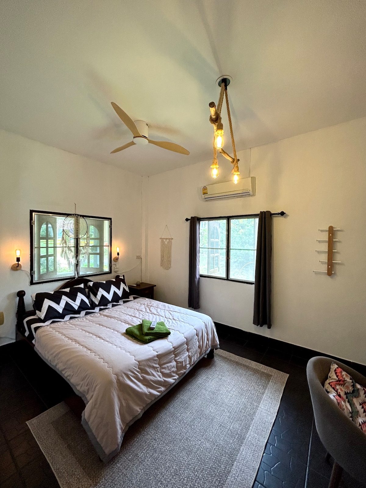 🏠 La casita está ubicada dentro de Boon Heritage House Guesthouse. La habitación está decorada con materiales naturales, tonos cálidos. Viene con baño, aire acondicionado, baño privado, ropa de cama cómoda, TV, nevera y otros elementos básicos para una estancia relajante. Aunque esta habitación no ofrece una vista directa al mar, los huéspedes pueden disfrutar de las áreas al aire libre con vistas al atardecer. Ten en cuenta que la casa está ubicada a lo largo de una carretera principal, por lo que se escuchará algo de ruido del tráfico de los vehículos que pasan.