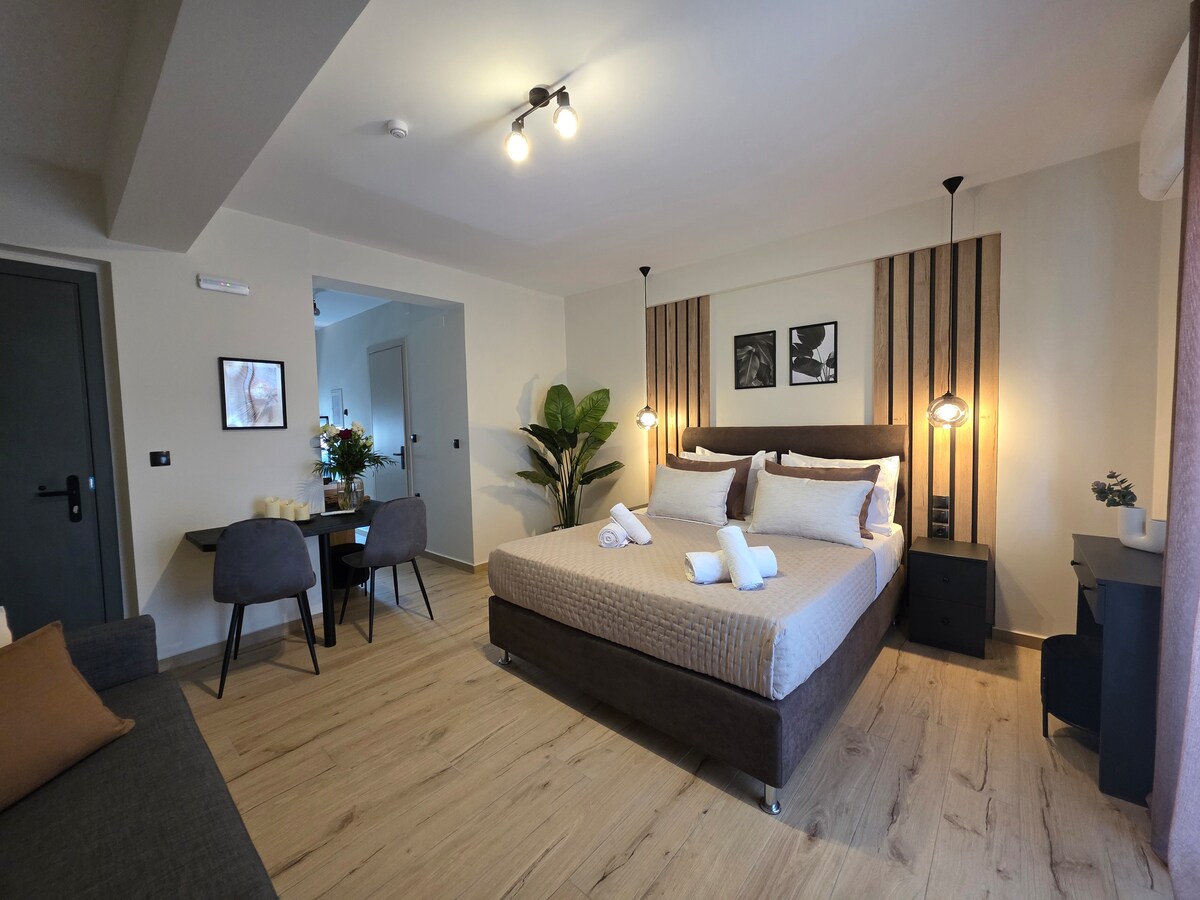 Disfrute de una experiencia de alojamiento en un estudio de un dormitorio totalmente equipado con balcón privado. El apartamento está situado en el centro de Agrinio (a 1 minuto a pie de la plaza principal) muy cerca de tiendas, restaurantes y lugares de ocio. Panadería y supermercado a 1 minuto a pie. También a 2 minutos se encuentra el aparcamiento municipal de Agrinio. Una ubicación ideal para los visitantes que desean explorar la ciudad y más.