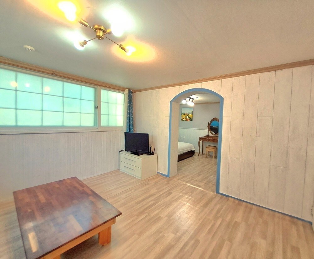 El dormitorio y el espacio de la sala de estar/cocina están completamente separados, por lo que puedes descansar agradablemente. La barbacoa es una parrilla eléctrica que es cómoda en interiores en verano y cálida en invierno, incluso cuando llueve. Puedes comer mientras miras la hermosa vista. La playa de Kkotji está a 10 minutos a pie y el arboreto de Anmyeon-do.El bosque del centro vacacional está a 5 minutos en auto y el puerto de Bangpo está a 3 minutos.