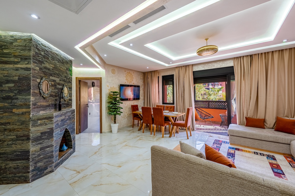 Descubre el lujo moderno en este elegante apartamento totalmente equipado en el corazón del distrito de Gueliz de Marrakech. Internet ultrarrápido lo hace ideal para viajeros de negocios y de placer. Camina hasta la estación de tren y el Teatro Real y disfruta de la proximidad a las tiendas Carré Eden. A poca distancia en taxi de Jamaa el Fna y de las principales atracciones. Por favor, ten en cuenta que no se aceptan parejas marroquíes solteras y huéspedes. ¡Reserva ahora para disfrutar de una experiencia inolvidable en Marrakech!