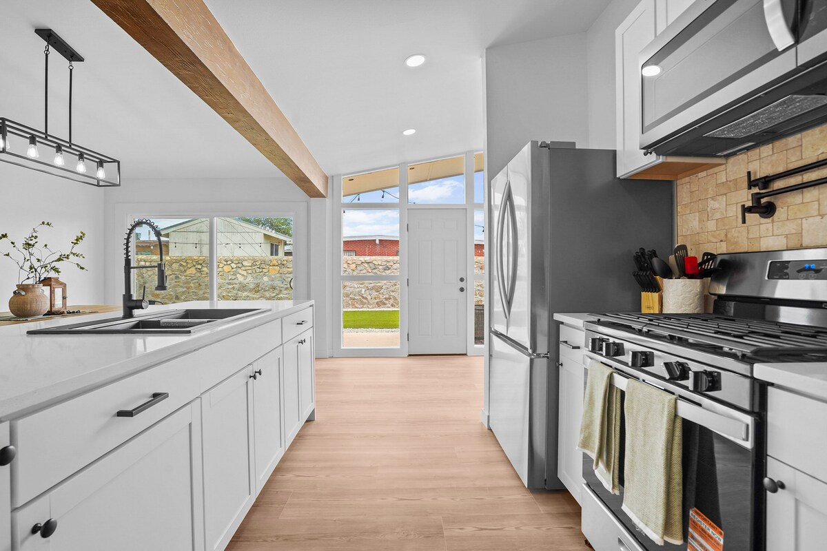 ¡Te damos la bienvenida a SunKissed Retreat! Este oasis de 4 dormitorios, ubicado en el sereno Westside de El Paso, ofrece la combinación perfecta de comodidad y conveniencia. Relájate en la espaciosa suite principal con cama tamaño king y TV privada, o relájate en uno de los dormitorios tamaño queen. Con 4 televisores interiores y uno exterior. Cerca de tiendas, restaurantes y con acceso rápido a la I-10, esta casa que admite mascotas se encuentra en un barrio seguro y tranquilo, por lo que es ideal para tu próxima escapada relajante. ¡Perfecta para grupos o familias!